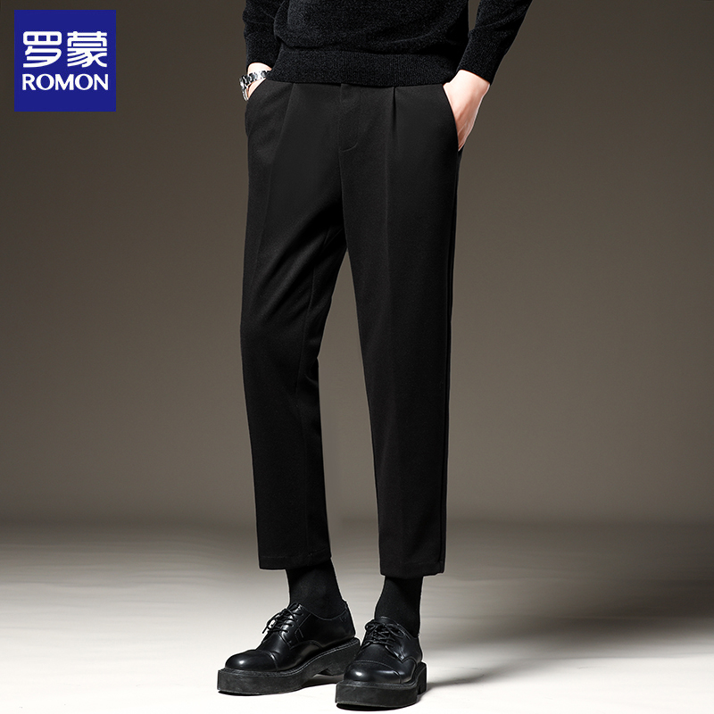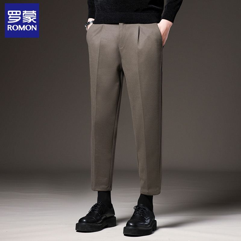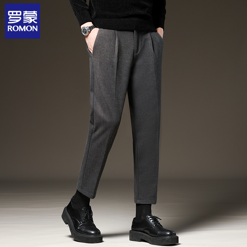 罗蒙垂坠感九分裤男春秋季加厚宽松直筒西裤韩版毛呢休闲裤男士裤