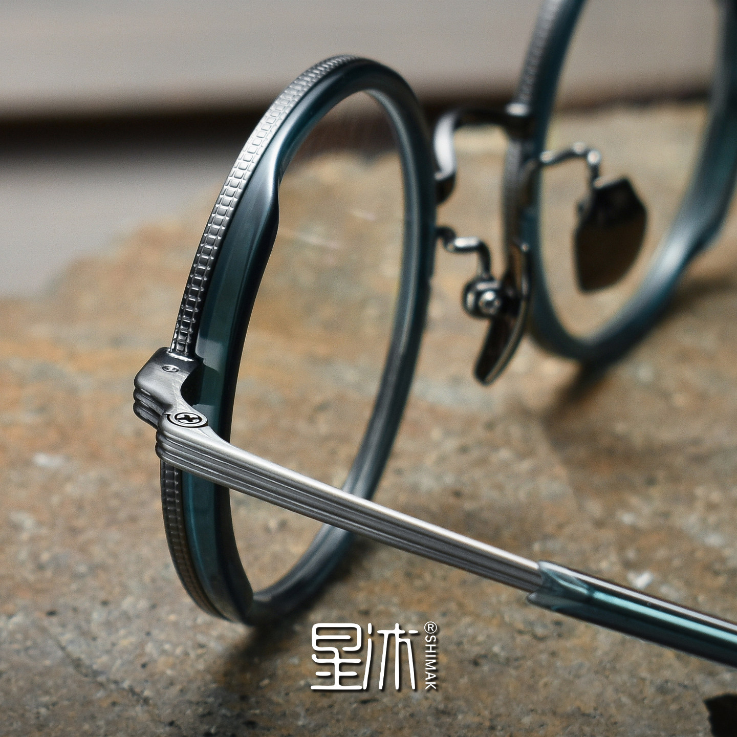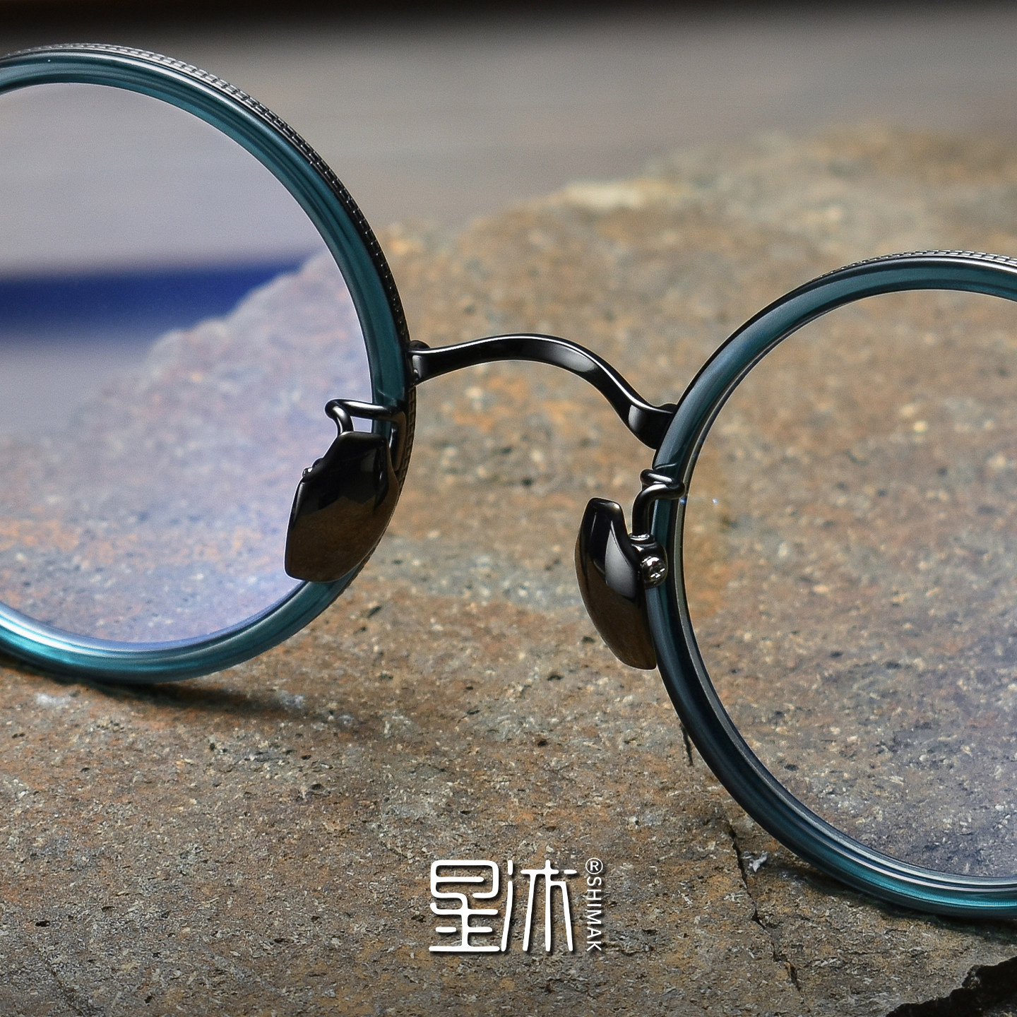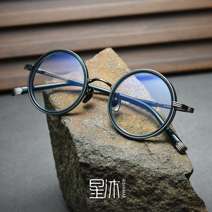 复古民国风圆形板材眼镜框男纯钛超轻防蓝光厚边近视个性文艺镜架