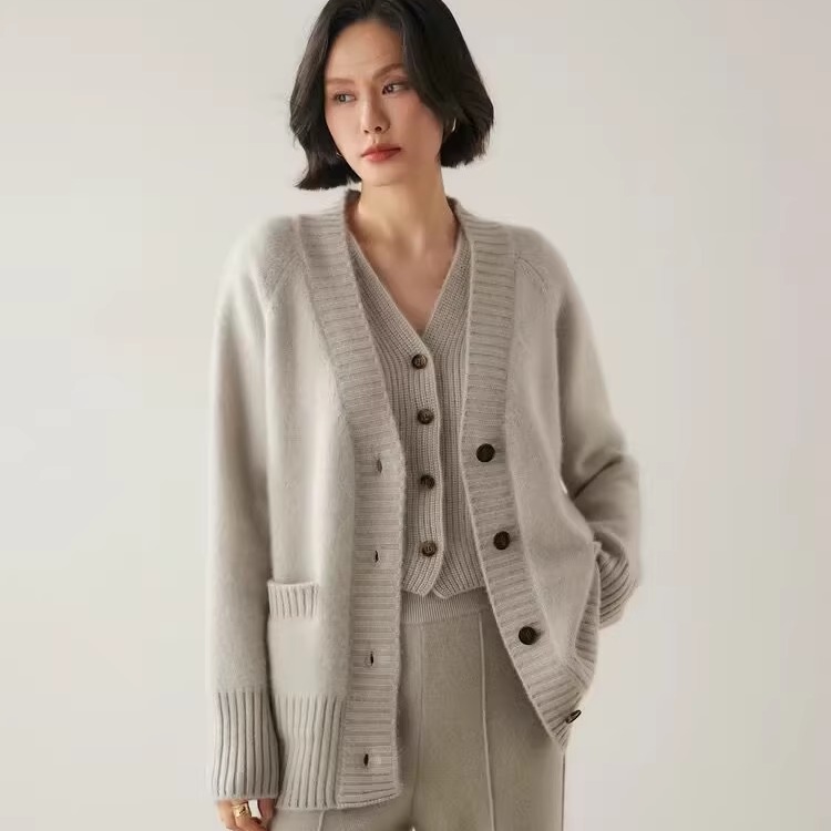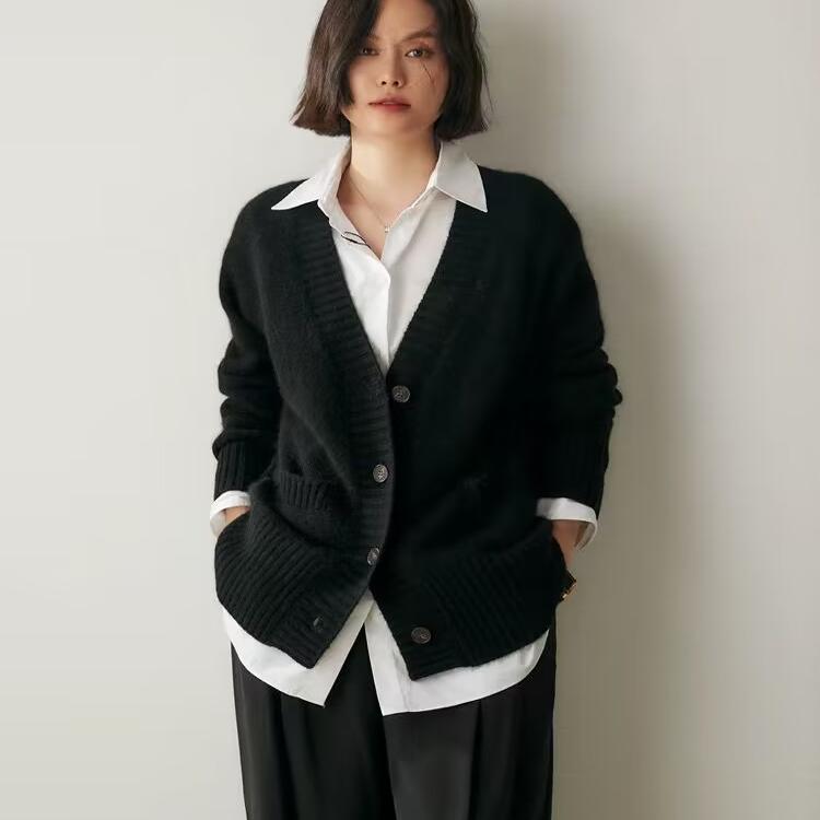 五针V领加厚羊绒开衫宽松慵懒