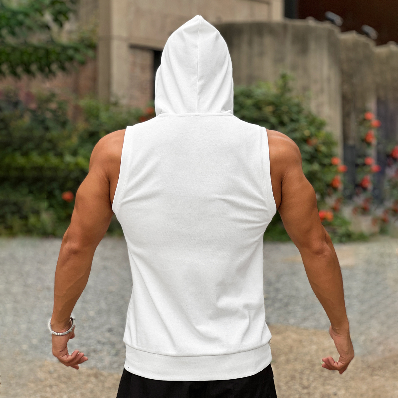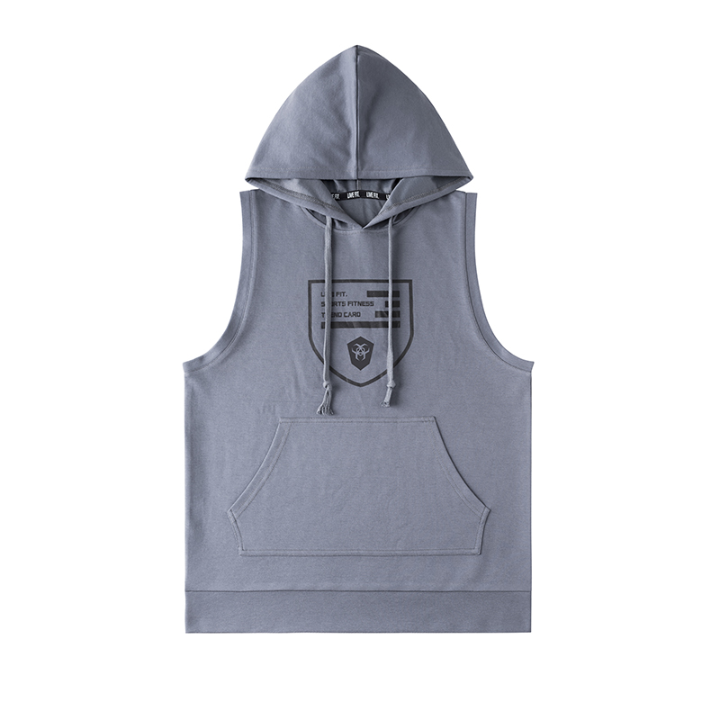 秋季健身衣训练跑步坎肩字无袖背心t恤男连帽卫衣运动马甲修身潮
