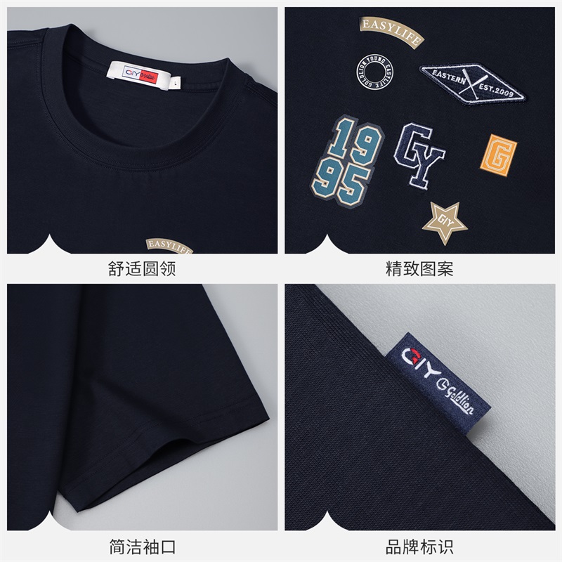 金利来GY时尚休闲短袖T恤男夏季全棉百搭圆领纯棉刺绣上衣体恤潮