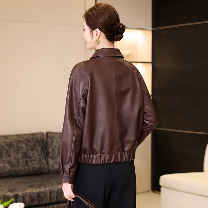 海宁真皮皮衣女2025春秋季新款高级感宽松时尚妈妈短款绵羊皮外套