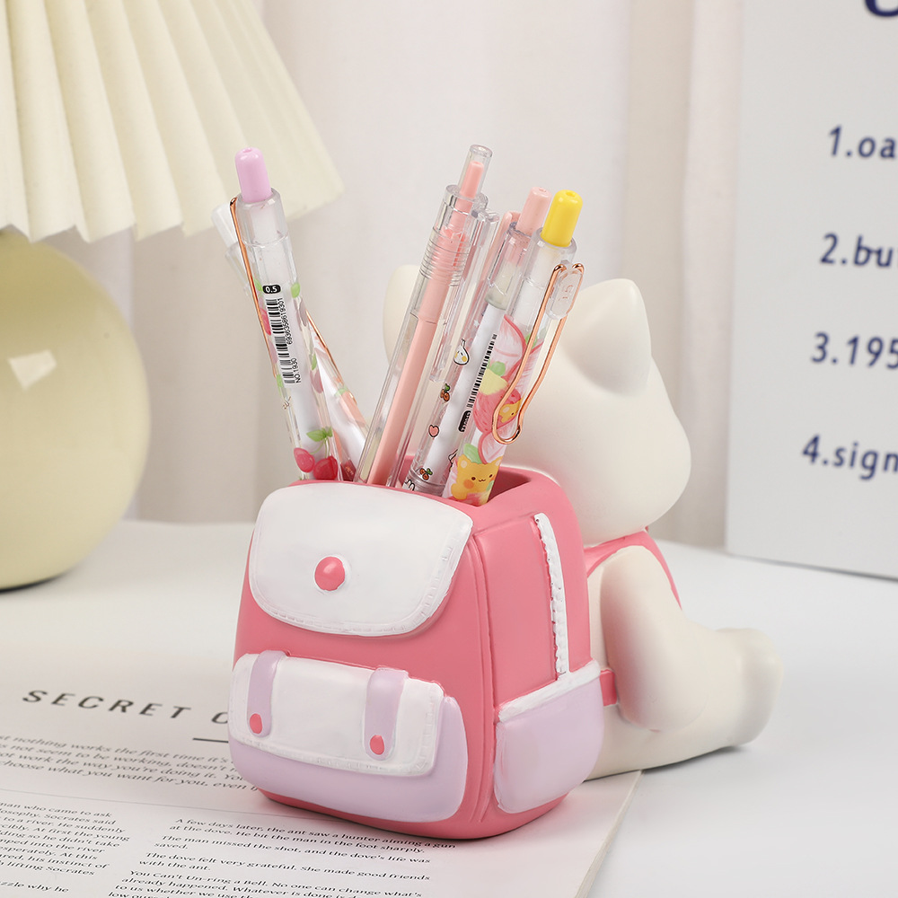樱花猫咪笔筒可爱创意学生用品办公室桌面装饰收纳化妆刷树脂摆件