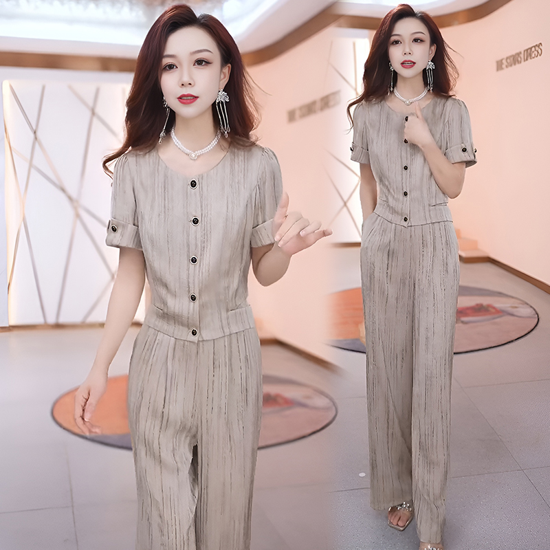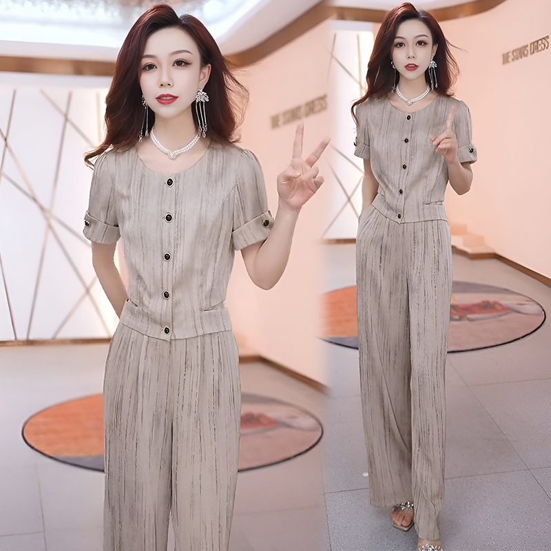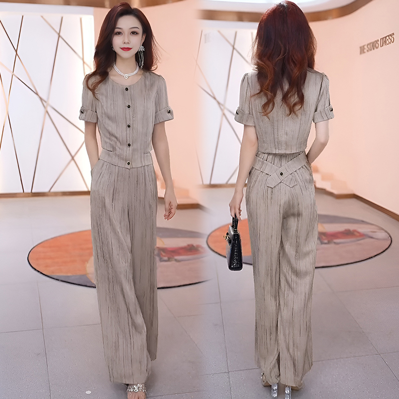 时尚套装女2025夏季新款洋气显瘦冰丝短袖阔腿裤休闲减龄两件套潮