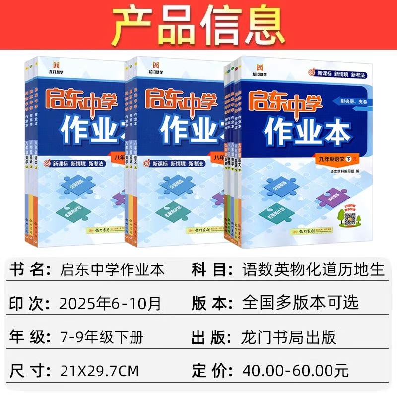 2025秋启东中学作业本七八九年级上册下册人教版江苏版全国版语文数学英语物理同步练习册初中课时作业本专项789教辅启东同步复习