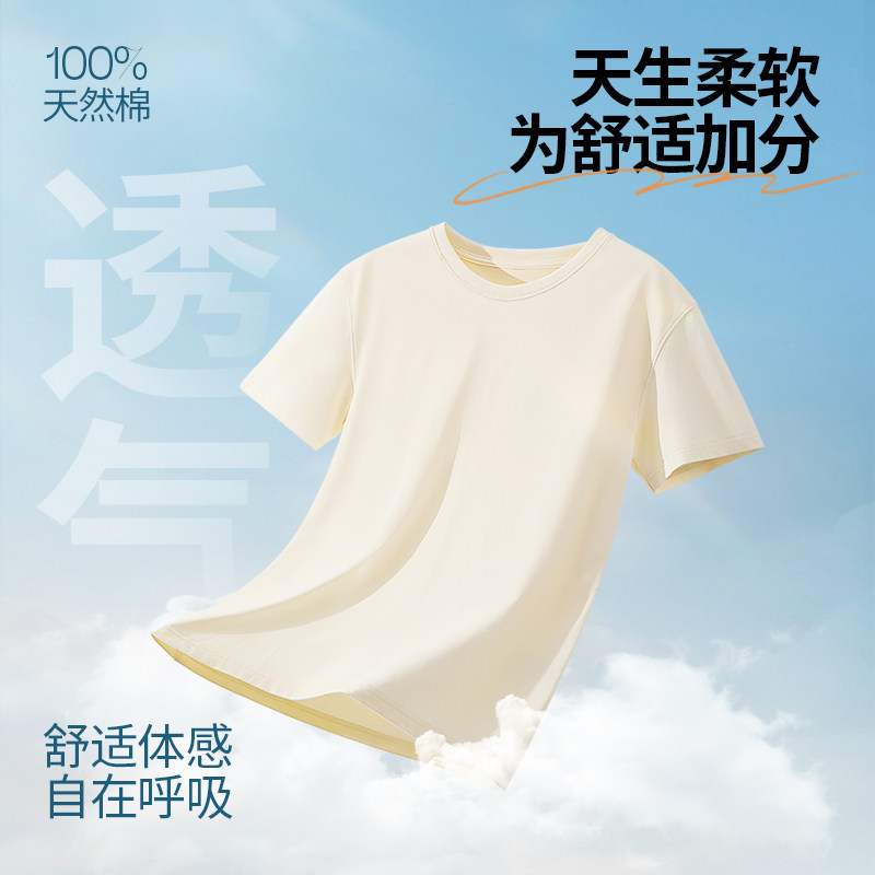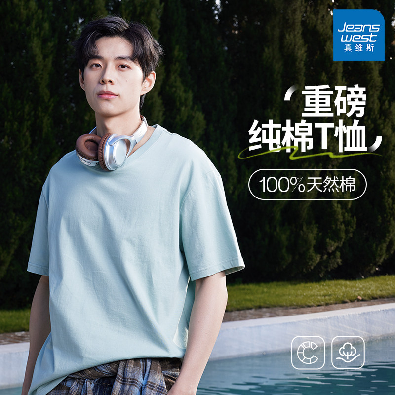 GV真维斯白色打底衫男夏季重磅纯棉透气半袖男士宽松内搭短袖T恤A