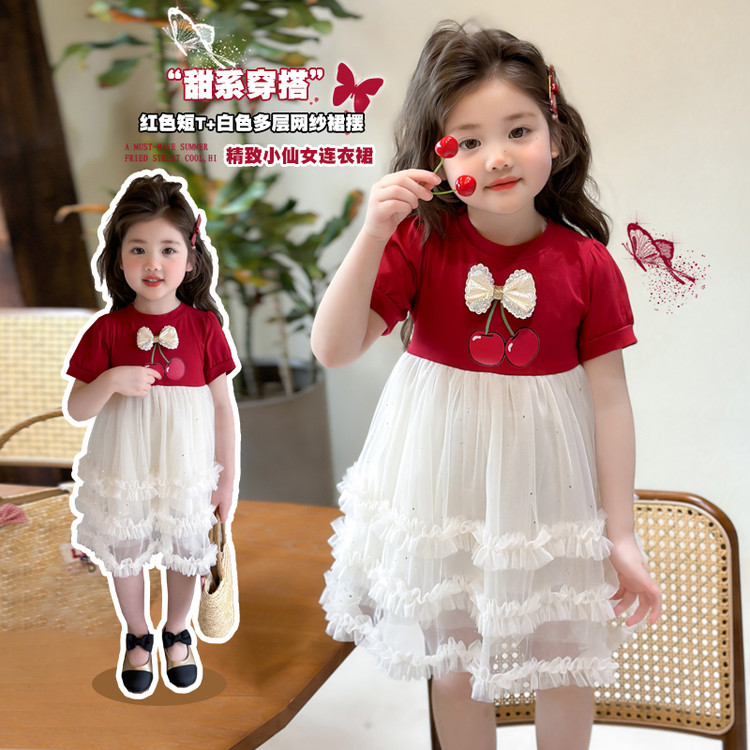 儿童连衣裙樱桃甜美拼接纱纱裙夏