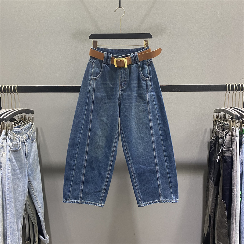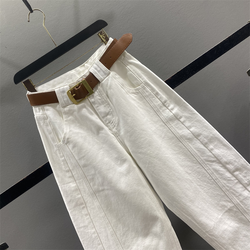 白色休闲弯刀牛仔裤女九分阔腿裤