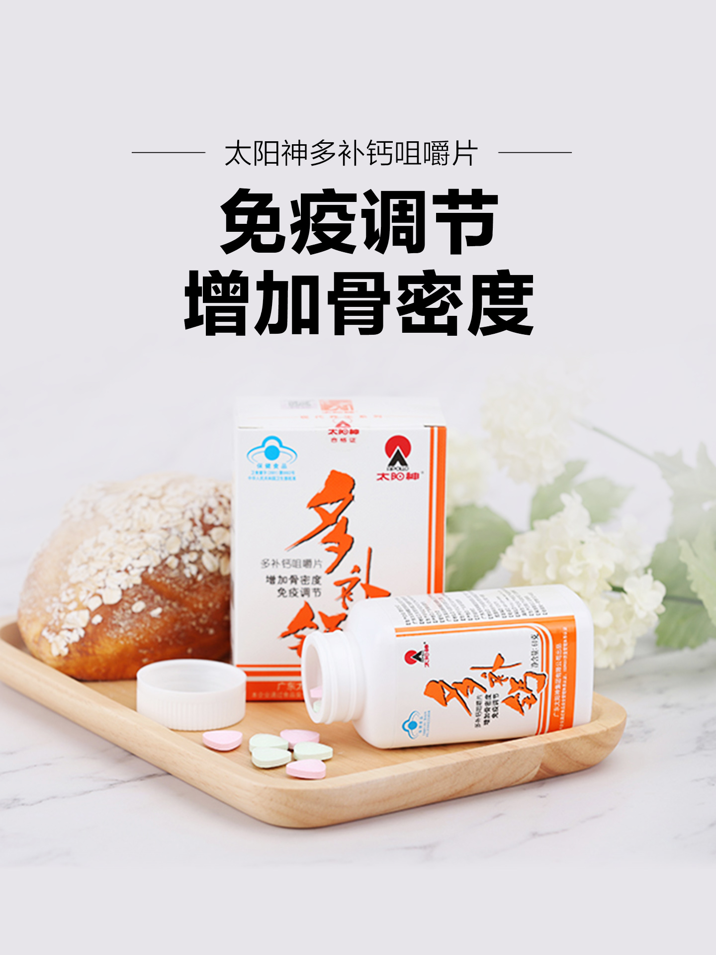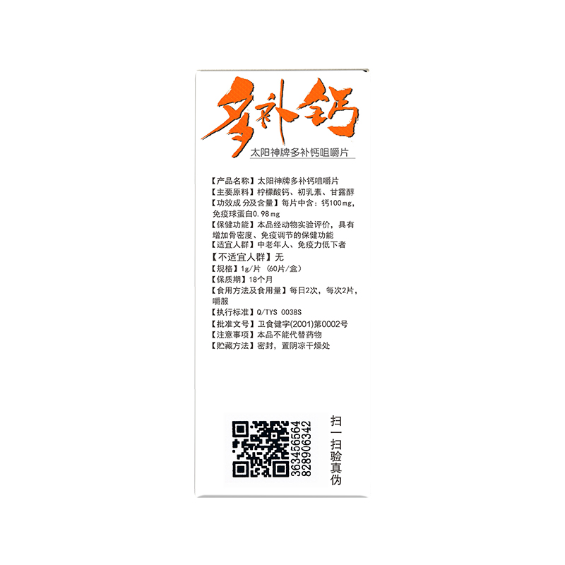 广东太阳神多补钙咀嚼片成人中老年增加骨密度免疫调节牛初乳钙片