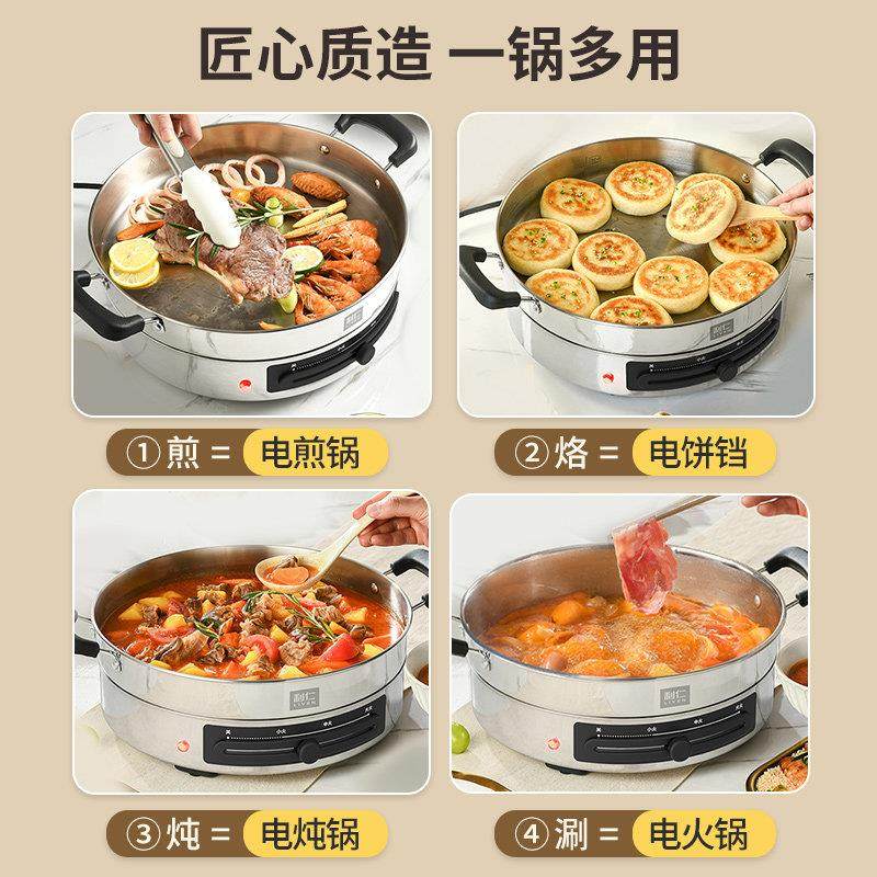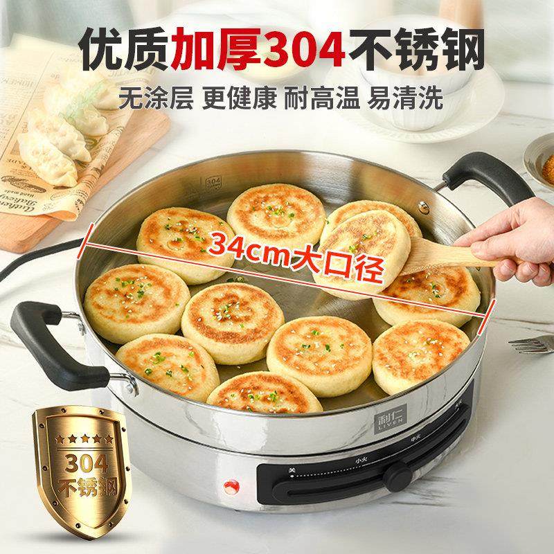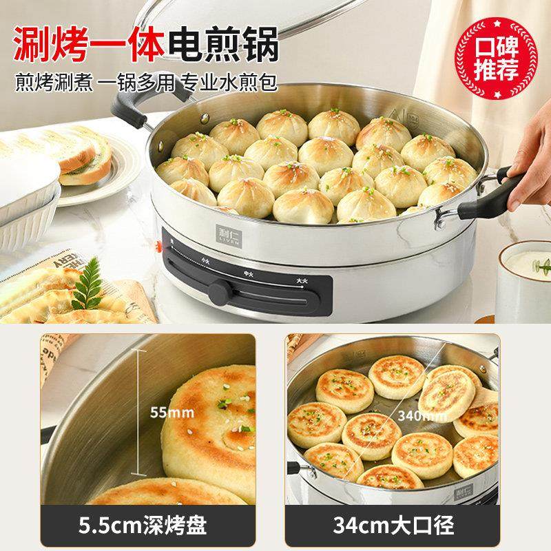 利仁电煎锅不锈钢电饼铛家用新款加深加大多功能煎饼烙饼锅
