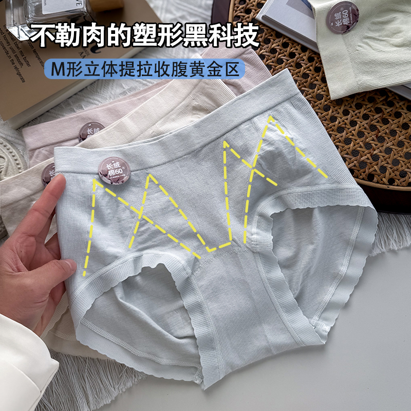 60支新疆长绒棉收腹提臀内裤女纯棉抗菌裆中高腰无痕2025新款裤头