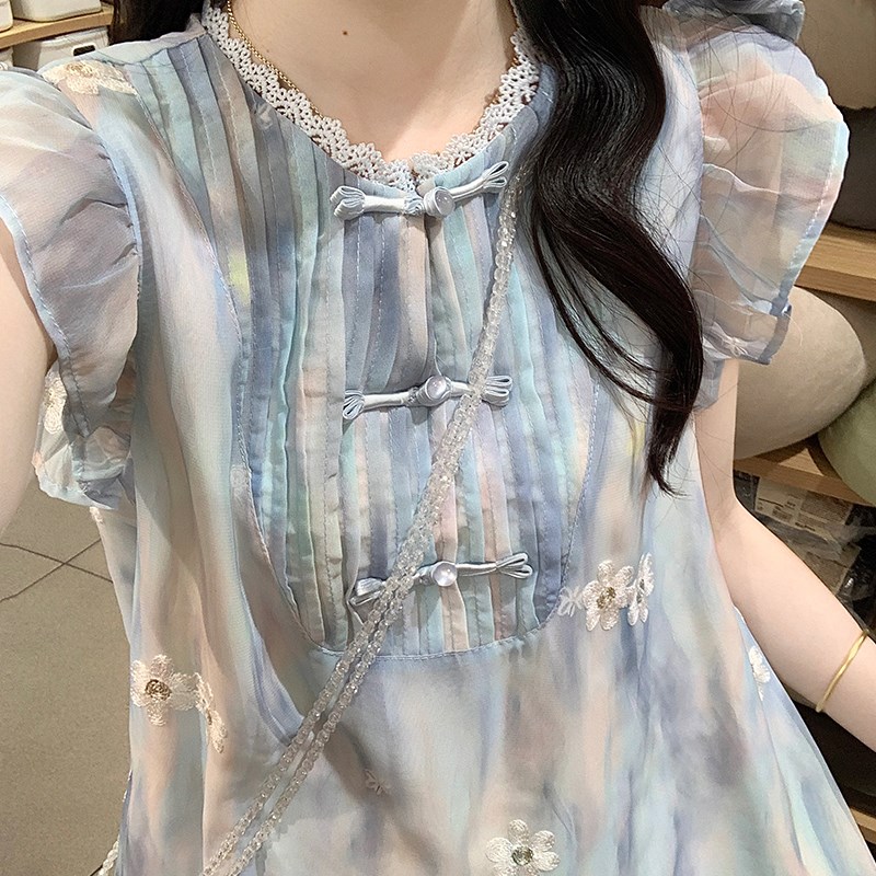 高中女生新中式气质中长裙夏2024新款初中学生设计感小清新连衣裙