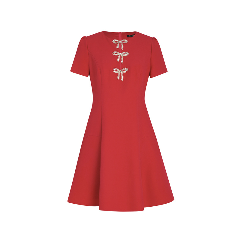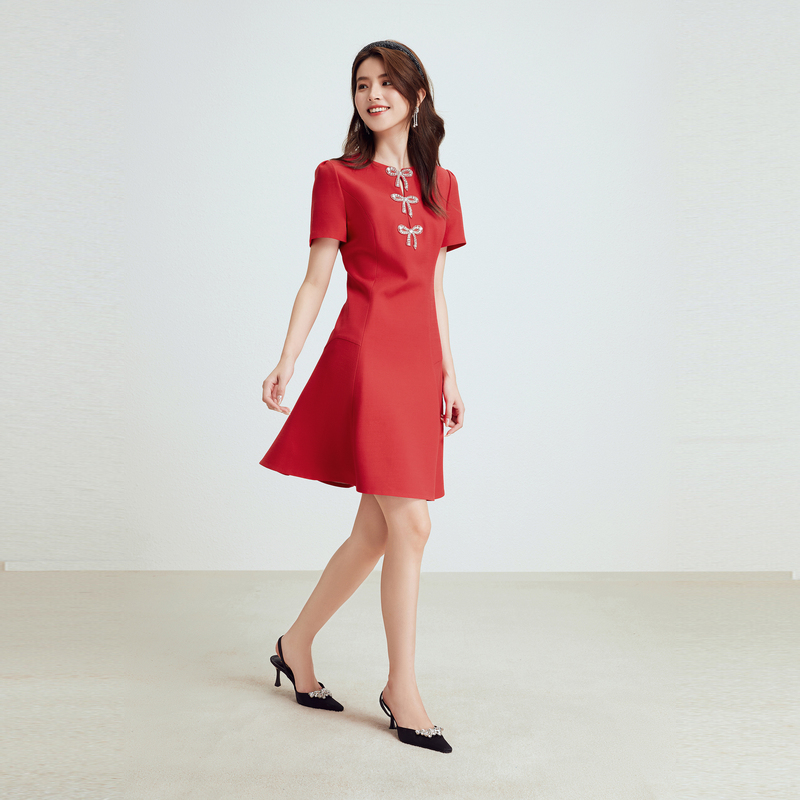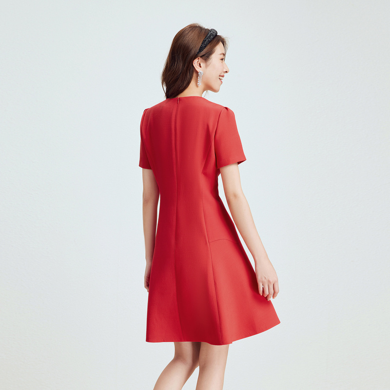 【桑蚕丝】Koradior珂莱蒂尔商场同款夏红色千金风连衣裙精致礼服