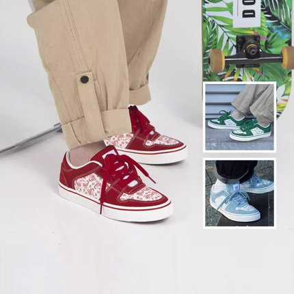 顽刻官方正红色腰果花翻毛皮帆布拼接男女低帮耐磨运动滑板鞋合