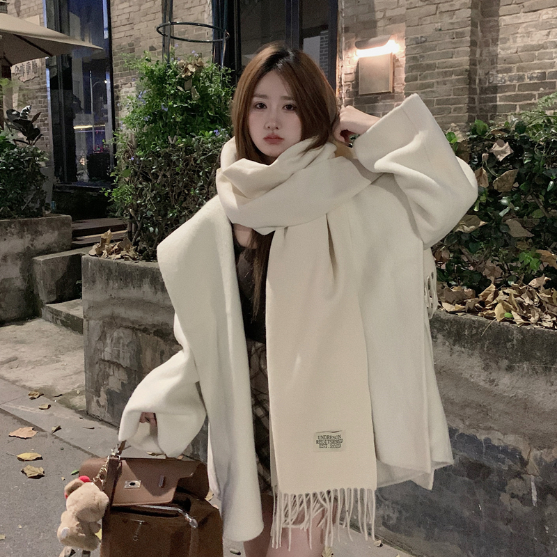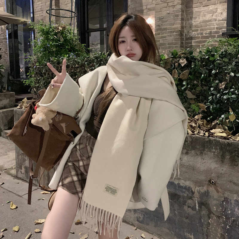 高级感白色仿羊绒围巾女冬季学生流苏长款围脖披肩两用保暖百搭冬