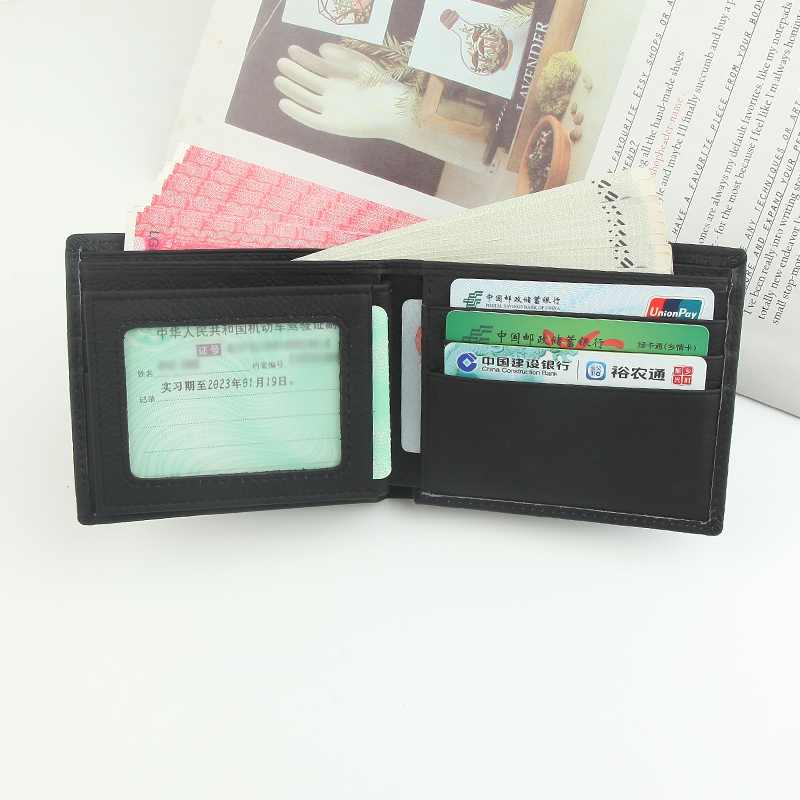 新款按扣头层牛皮钱包男短款驾驶证拉链简约学生钱夹爸爸真皮皮夹