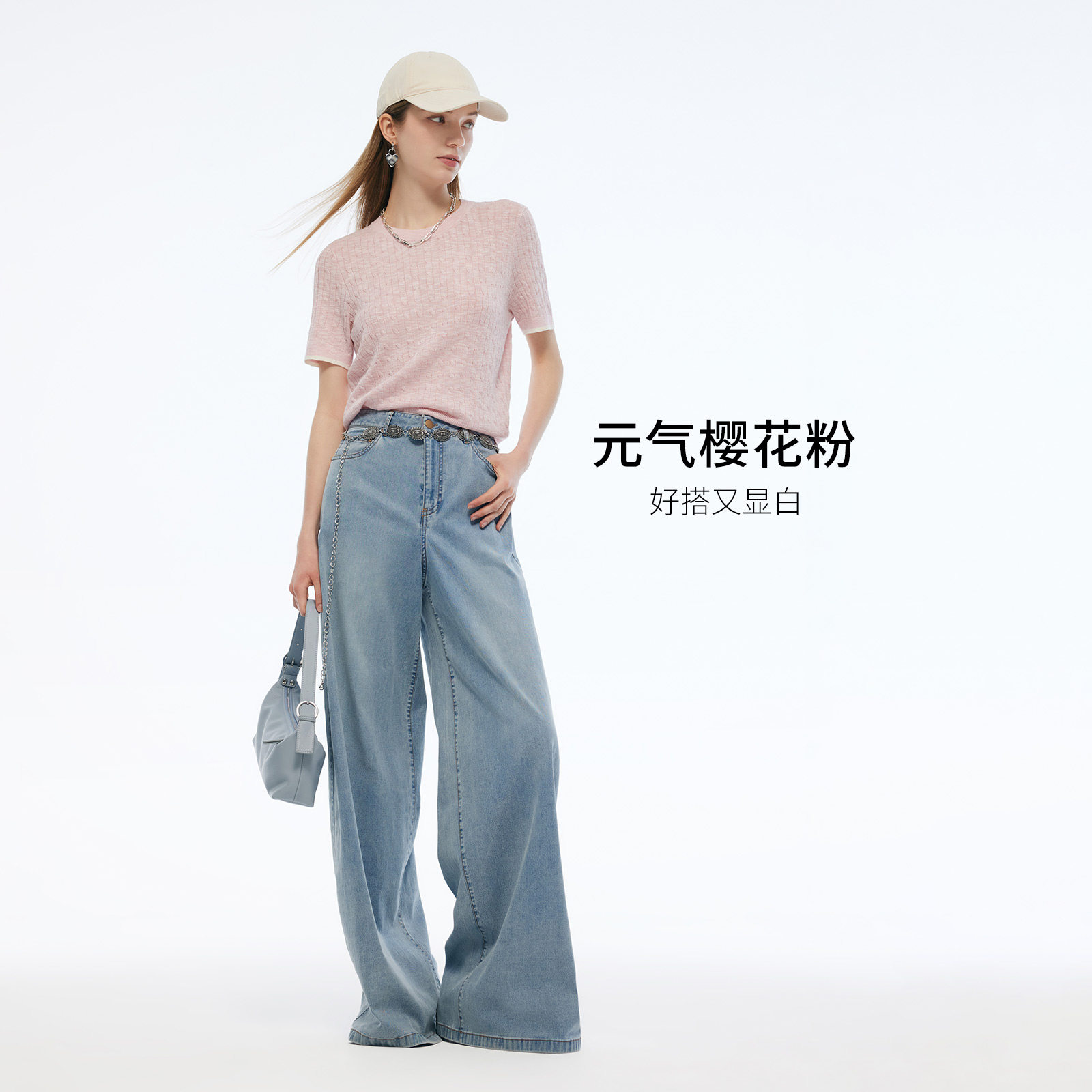 歌莉娅T恤女夏季流行穿搭2025新款设计感扭花针织短袖套头衫上衣