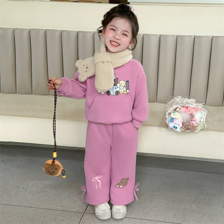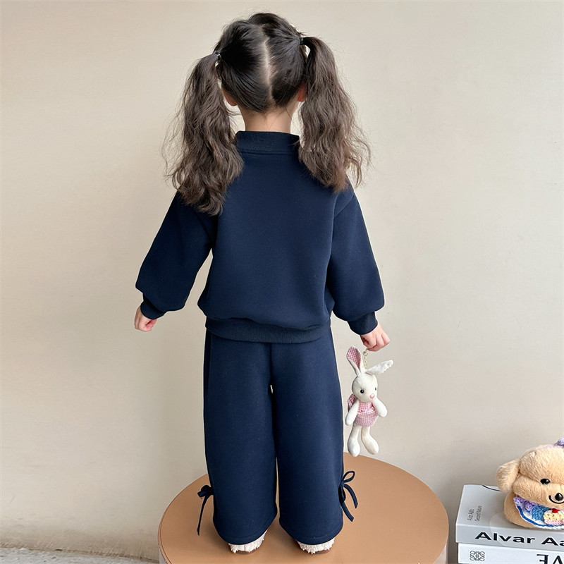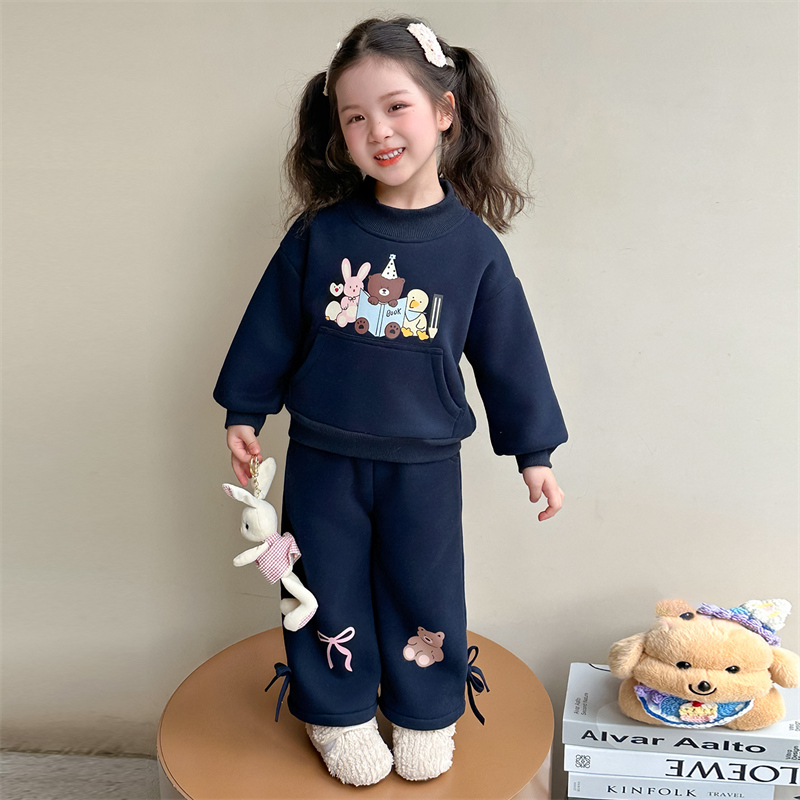 女童秋冬加厚保暖卫衣套装
