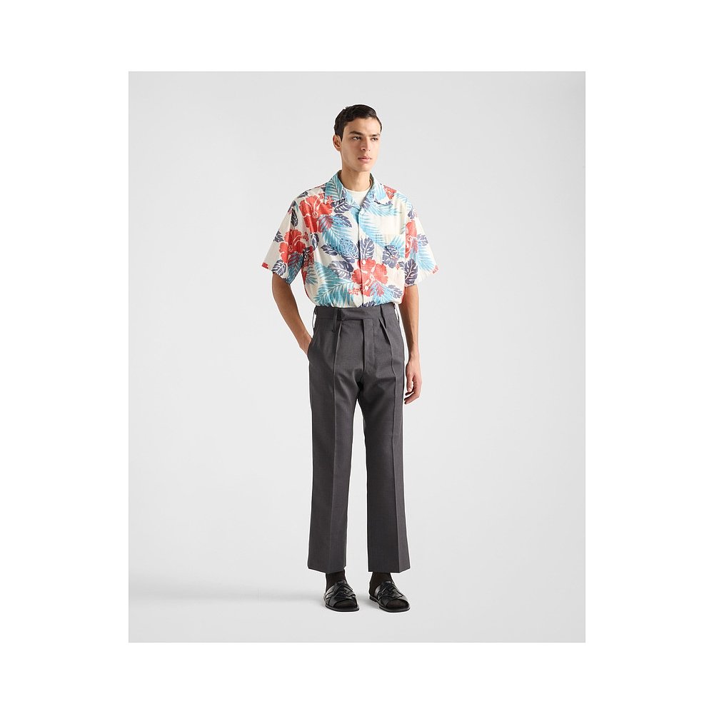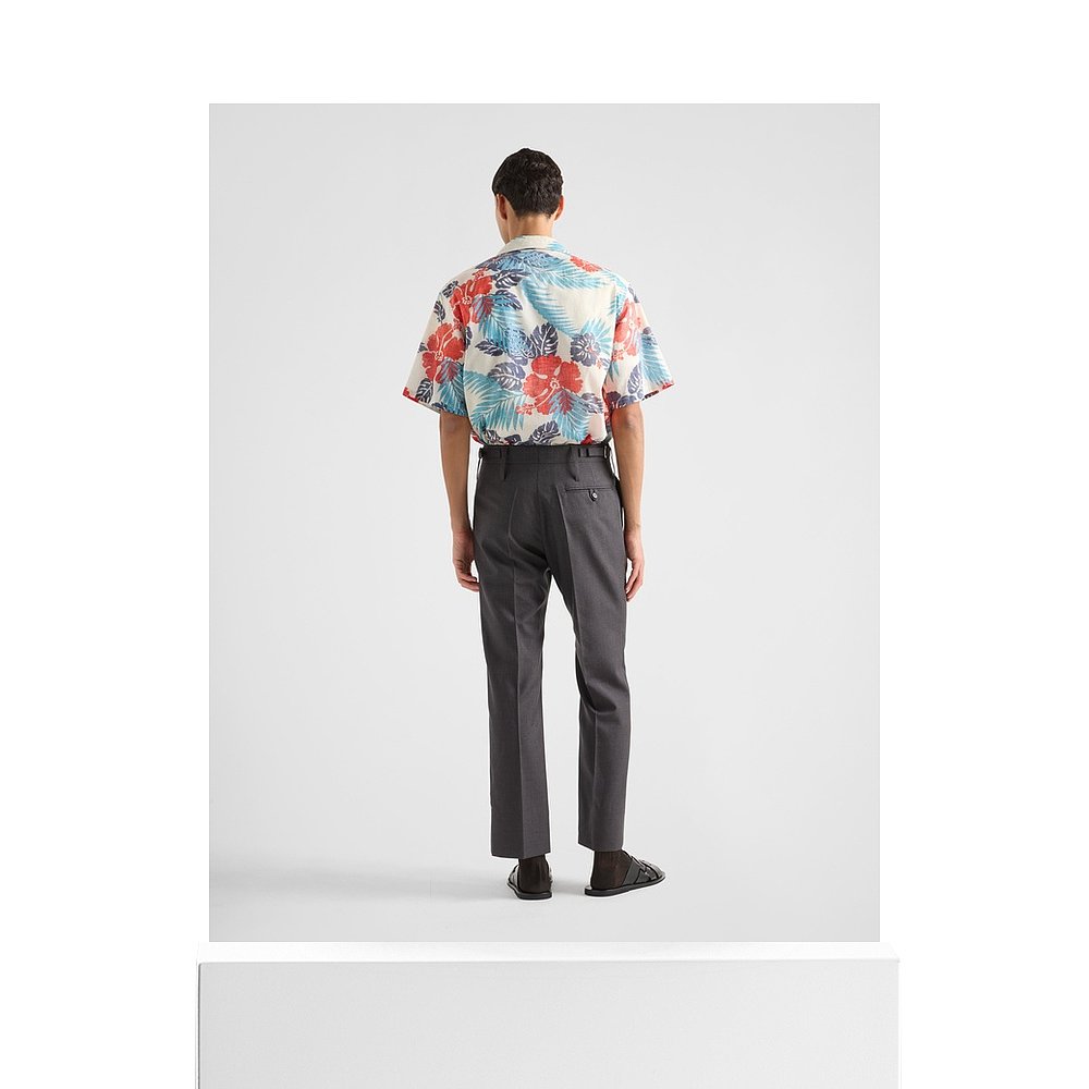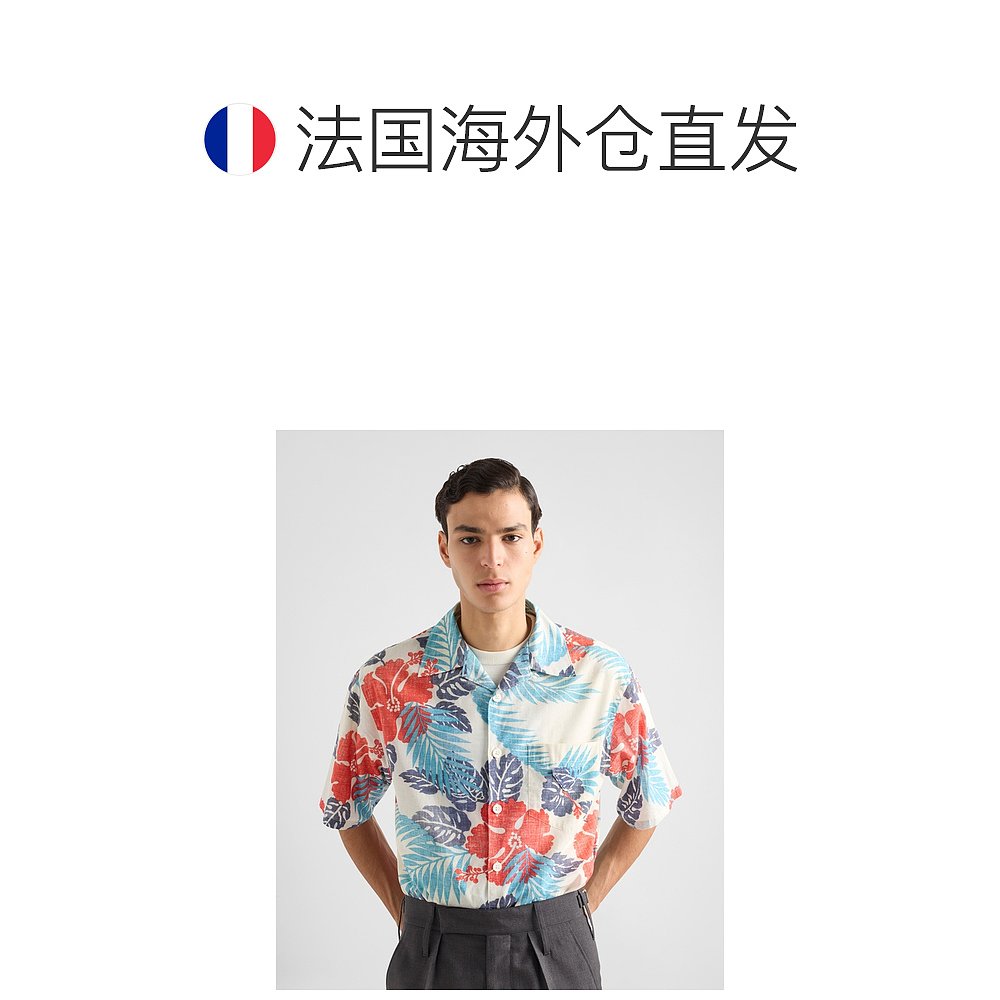 自营欧洲直邮Prada普拉达 男士红色/蓝色棉夏日花卉印花短袖衬衫