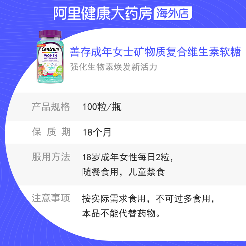 Centrum善存海外女士复合维生素女性多维元素软糖100粒 维生素b族