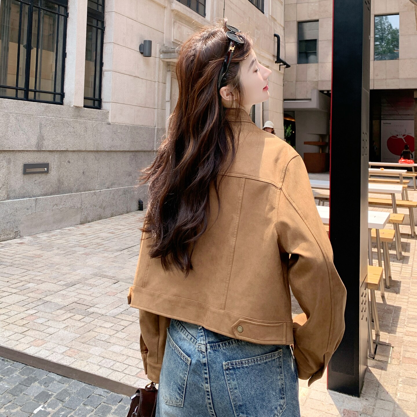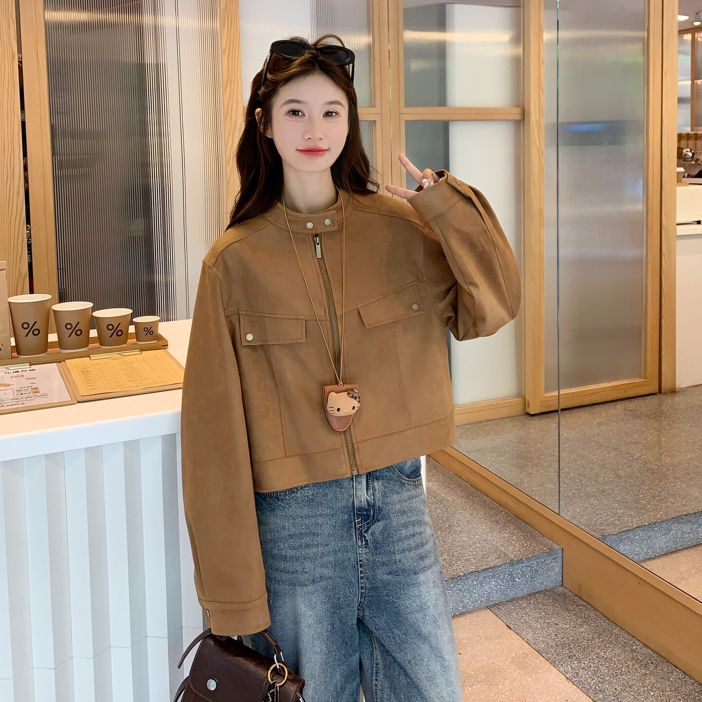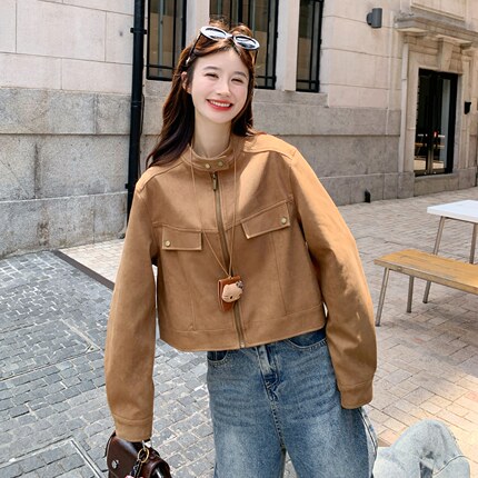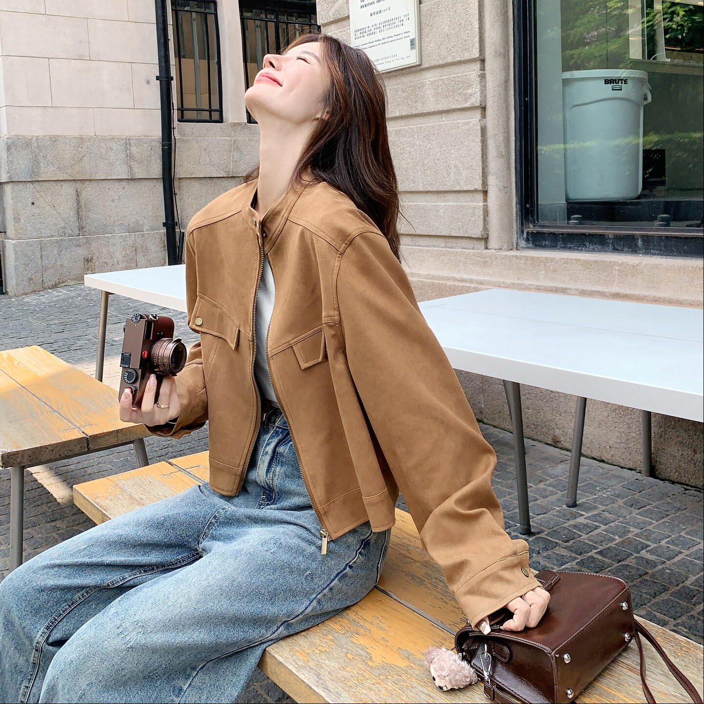 咖色小个子短款立领外套女2026年春季新款率性减龄甜酷风气质夹克