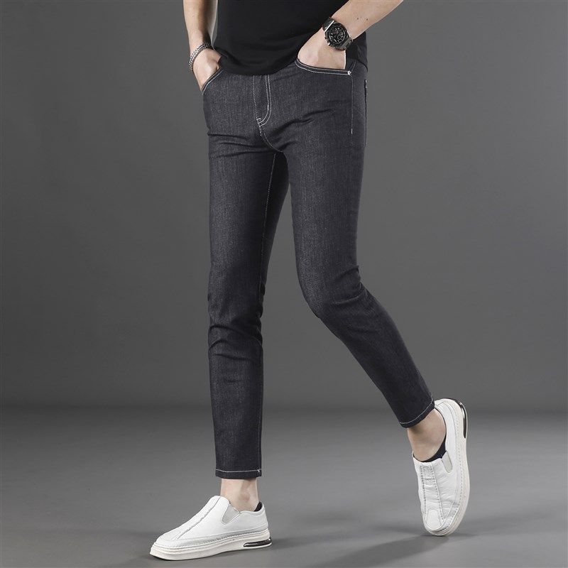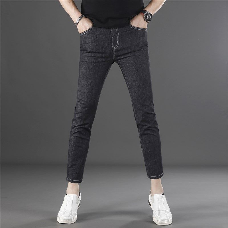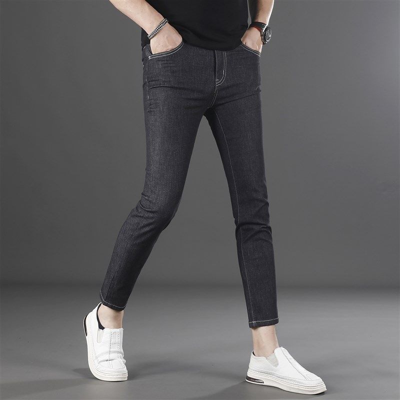 夏季薄款九分牛仔裤男修身小脚黑色2025新款潮流百搭休闲男生裤子
