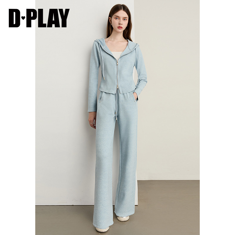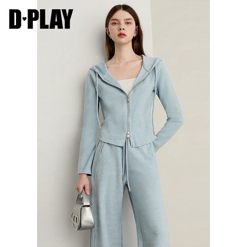 DPLAY年秋季新款蓝色套装女流行运动连帽休闲运动套装两件套