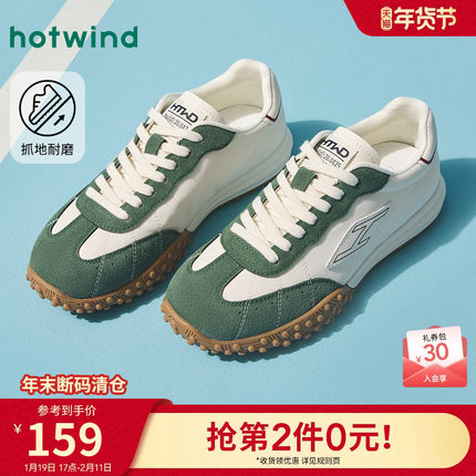 热风复古绿德训鞋女鞋2025年冬季新款户外休闲鞋子运动百搭慢跑鞋