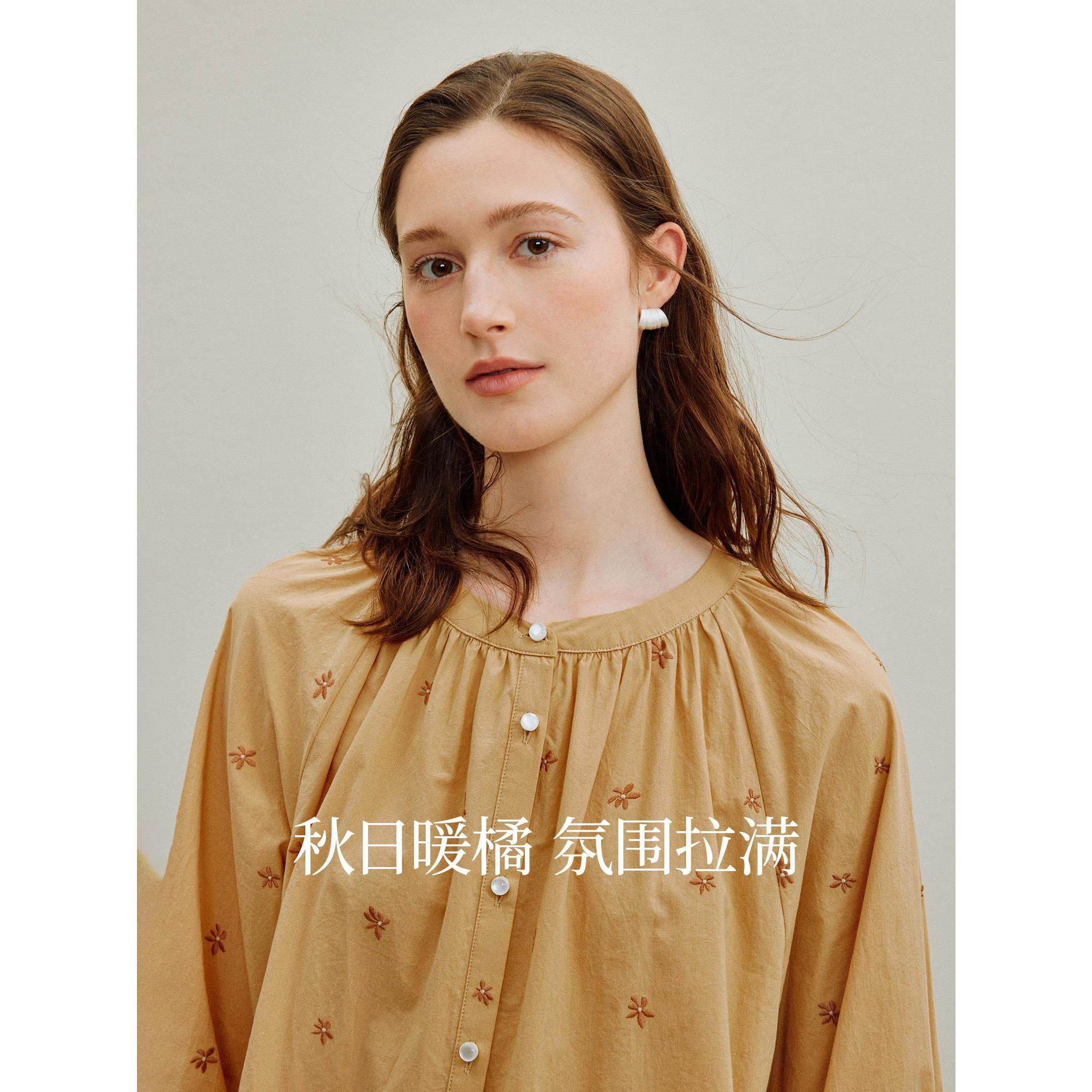 茵家法式复古绑带刺绣碎花衬衫女2025秋季新款休闲纯棉长袖衬衣