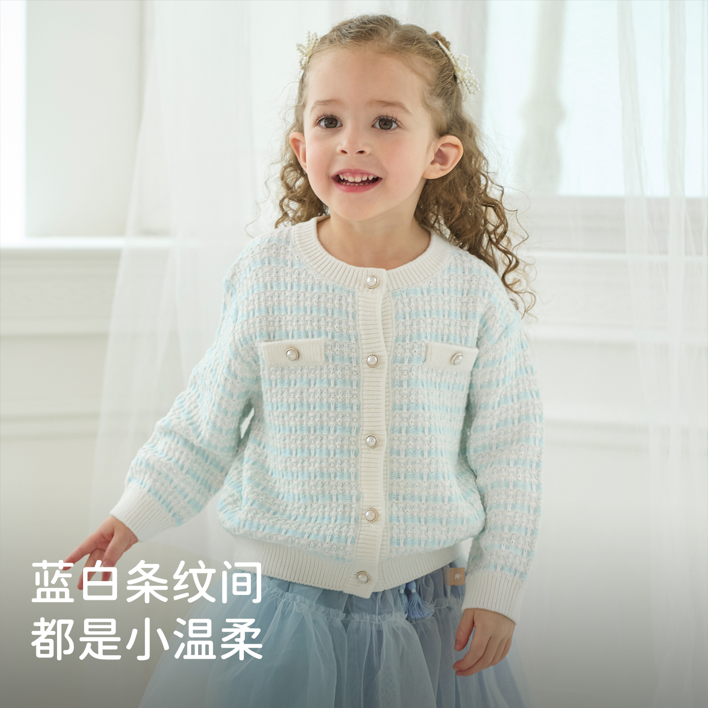 戴维贝拉儿童毛衣开衫2025秋装新款女童中大童小香风长袖针织外套