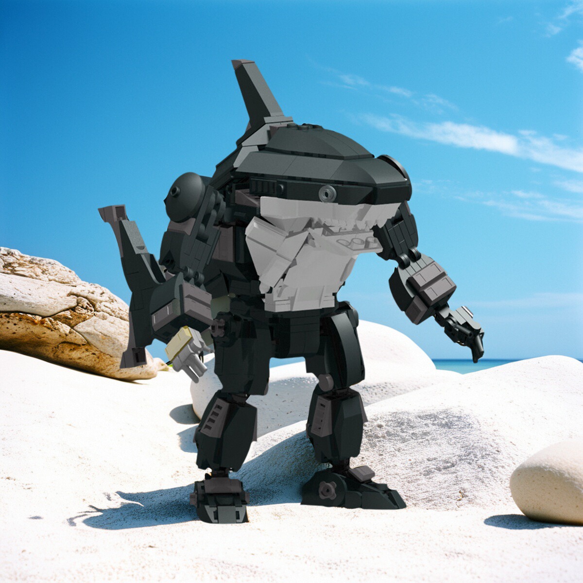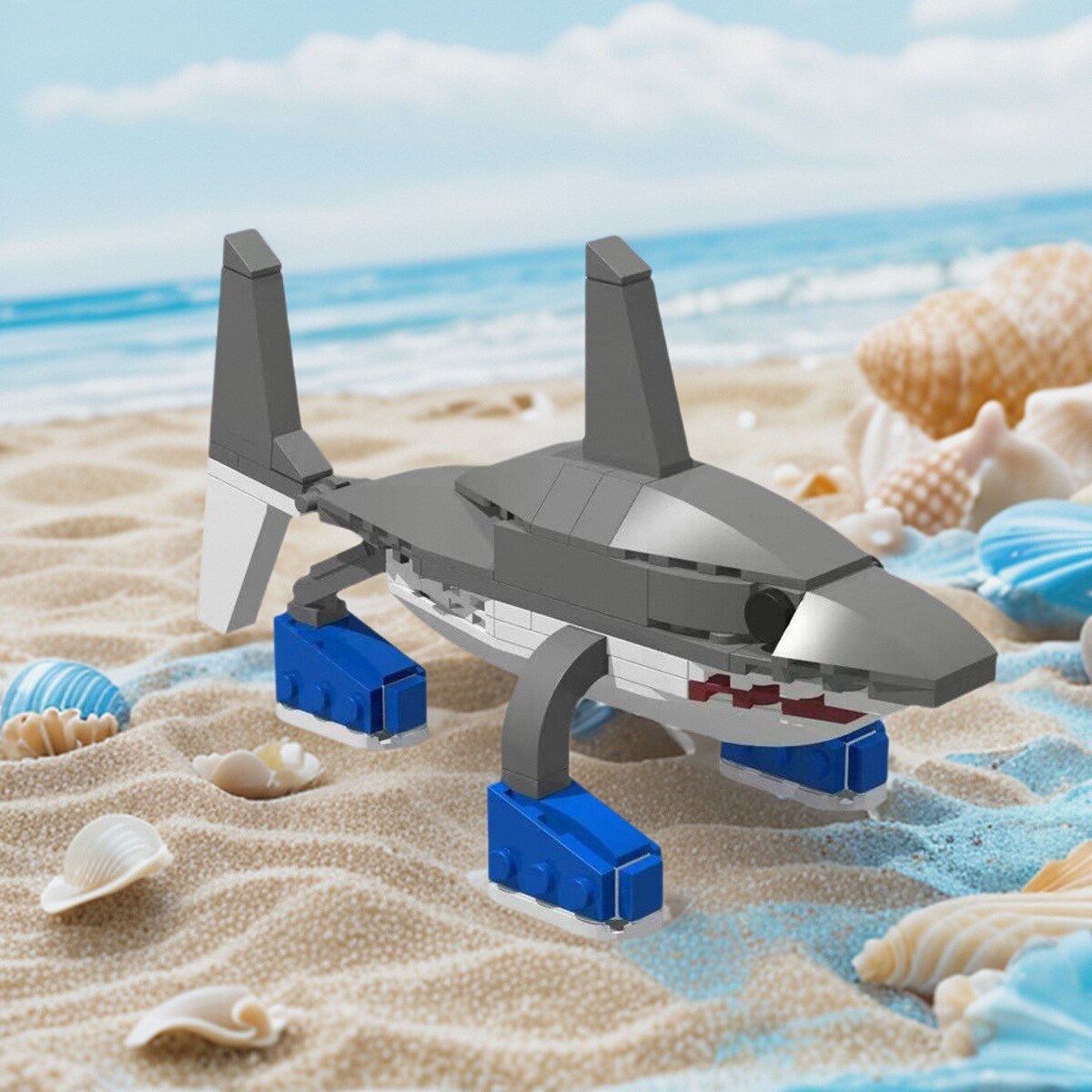 国外AI山海经鳄鱼章鱼水豚鼠木棍人跑鞋鲨鱼创意拼装手办积木玩具