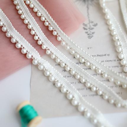 白色手工珍珠织带 网红diy装饰服装蕾丝花边旗袍洋装领子裙边材料