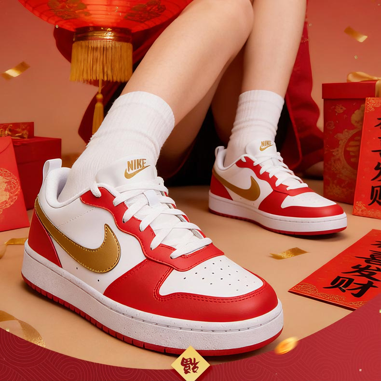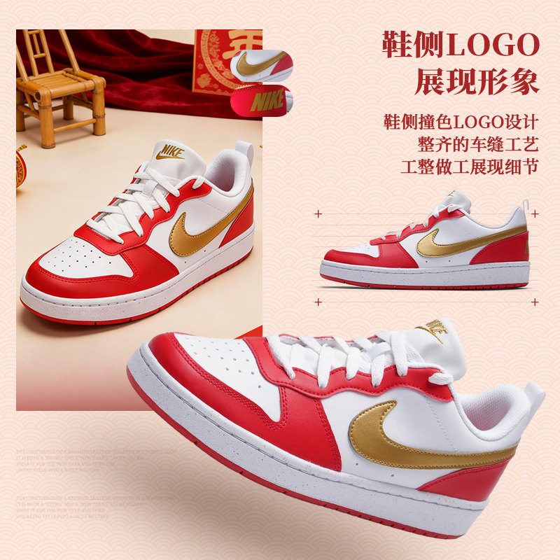 耐克NIKE儿童鞋2026新年款红色COURT魔术贴本命年学生运动休闲鞋
