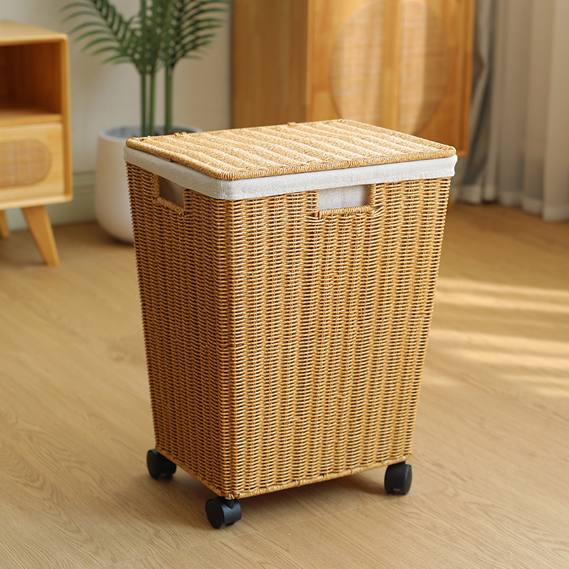 浴室脏衣篓带轮家用轻奢脏衣服收纳筐有盖推车卧室仿藤编洗衣篮子