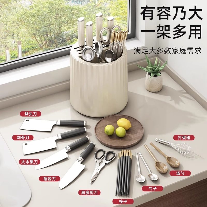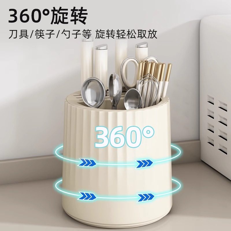 优勤旋转刀架置物架厨房刀座台面菜刀架多功能筷子筒刀具收纳