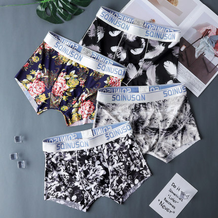 夏季男士内裤男平角裤冰丝舒适四角裤潮流个性男生底裤头裤衩短裤