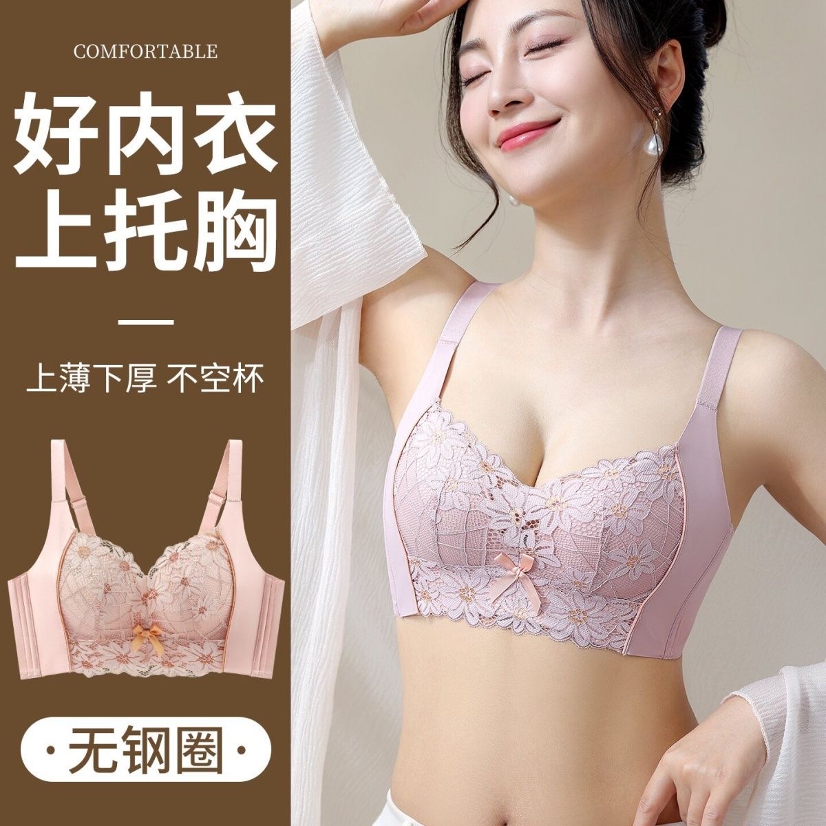 调整型内衣女小胸聚拢显大胸中厚上托收副乳防下垂无钢圈文胸蕾丝