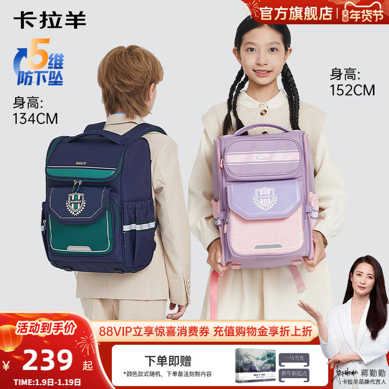 卡拉羊1-4-6年级小学生减负防下坠大嘴书包大容量背包男轻便女