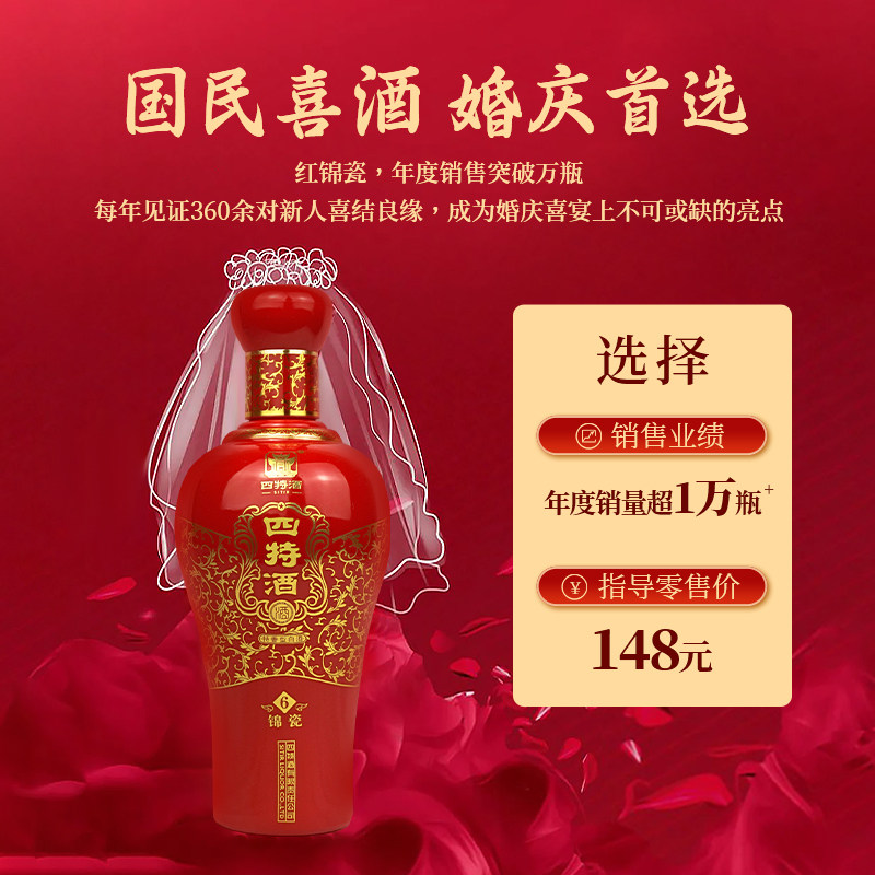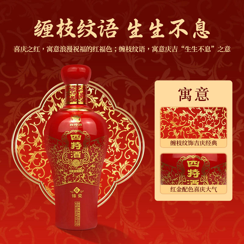 四特酒红锦瓷H6号 52度500ml*2瓶 特香型鸿运当头白酒婚庆宴请