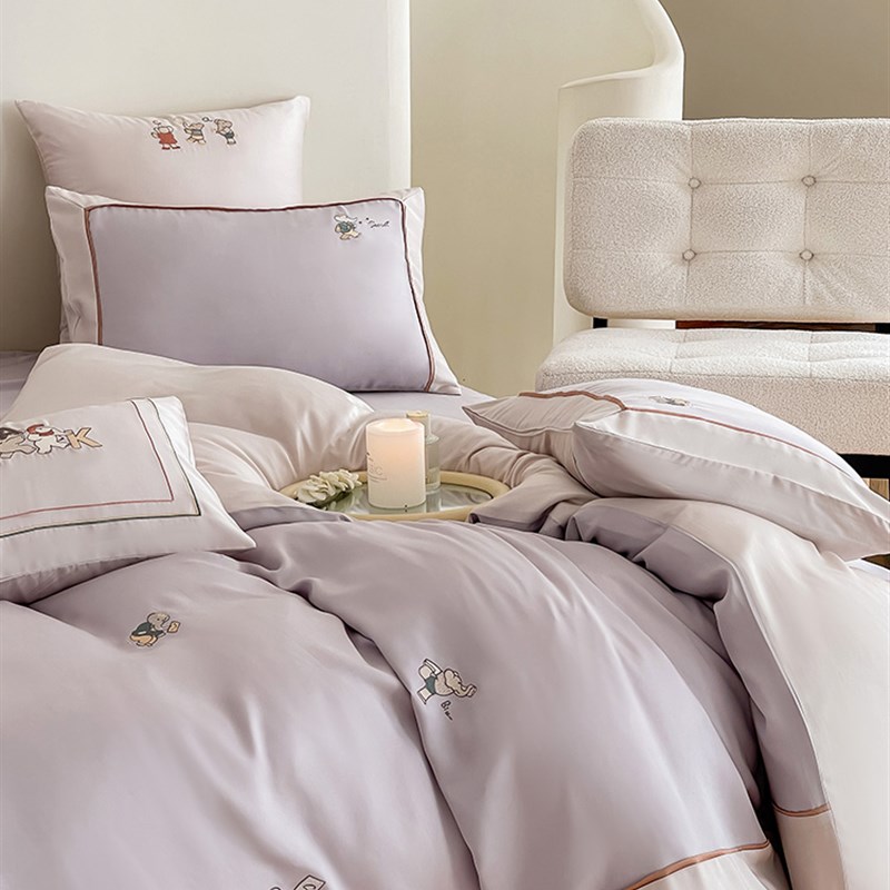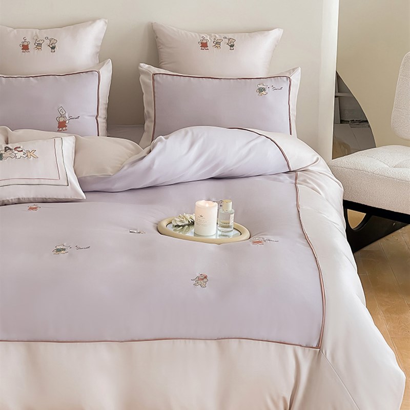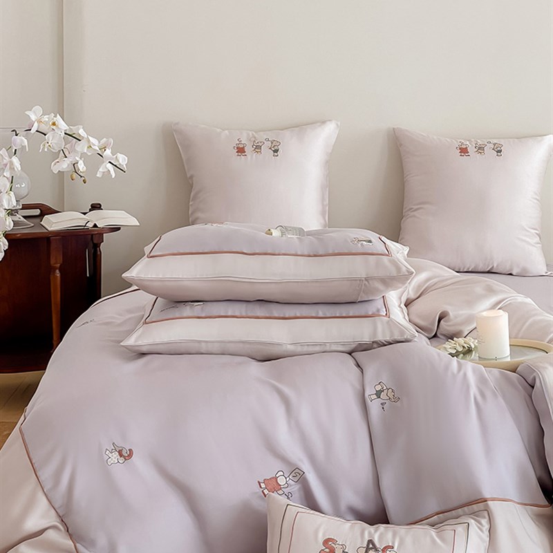 小清新夏季兰精天丝四件套60支双面冰丝可爱被套床单裸睡床上用品