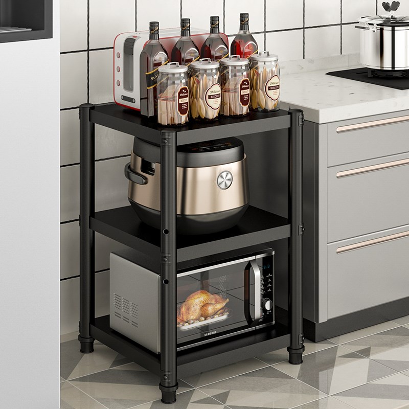 加厚碳钢烤漆置物架黑色微波炉架子落地多层厨房收纳架电烤箱蒸锅