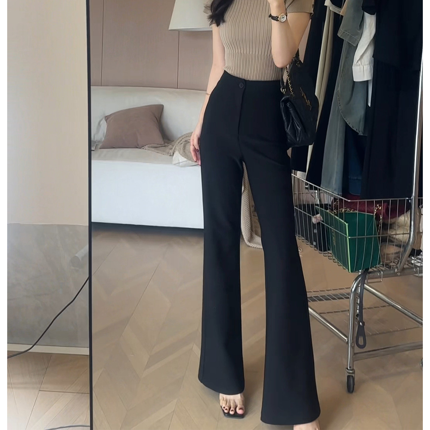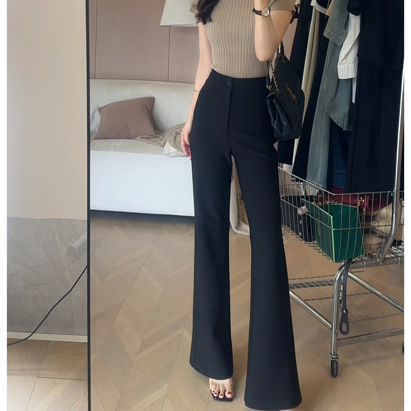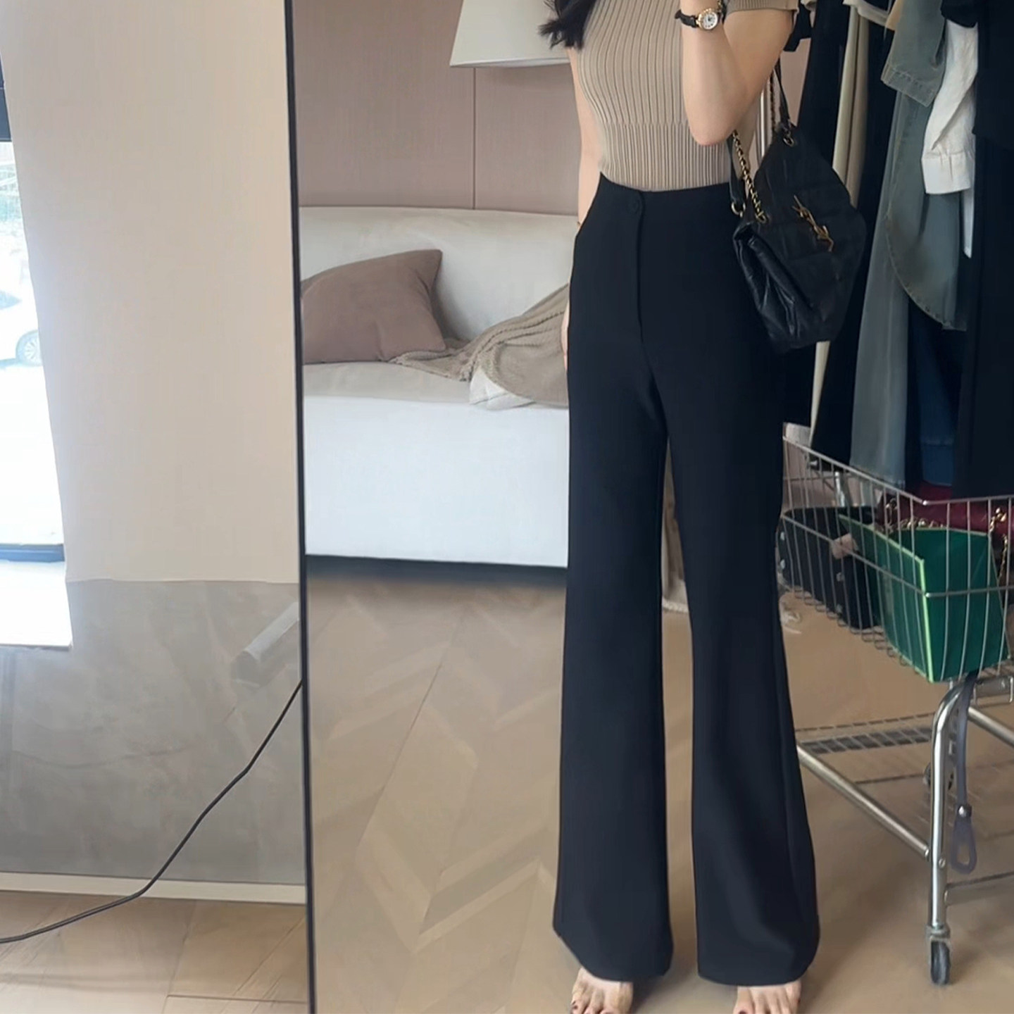 黑色高腰垂感微喇西装裤女