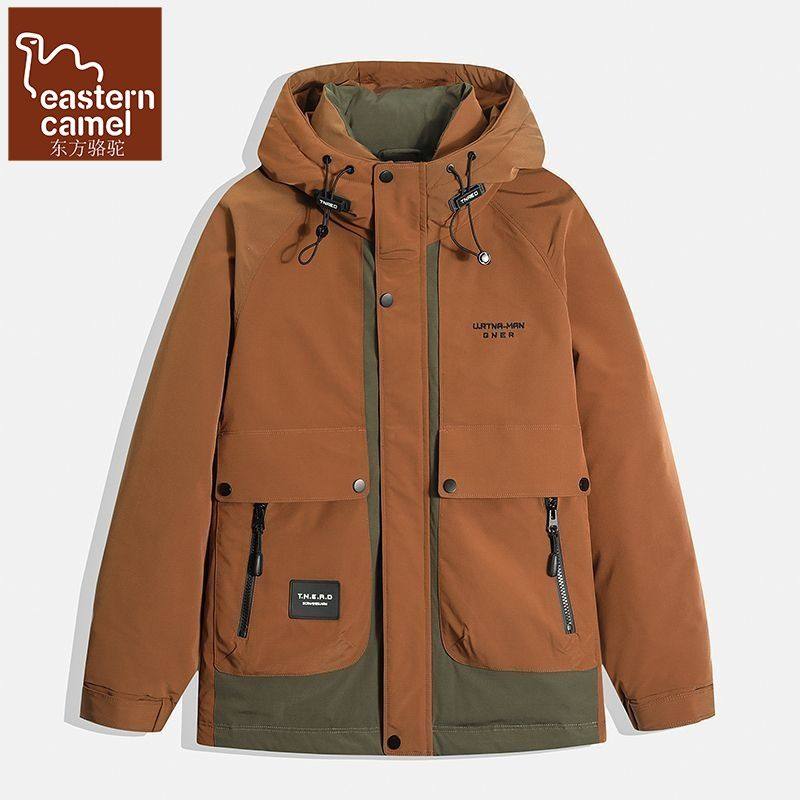 东方骆驼90绒子含量连帽鸭绒羽绒服男士冬季新品撞色拼接防寒外套