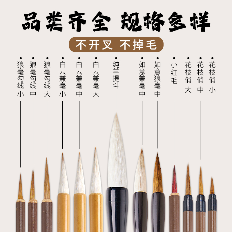 国画毛笔专用套装书法工具初学者基础入门兼毫羊毫勾线笔白云工笔画水墨画写意绘画中国画山水画颜料手绘画笔