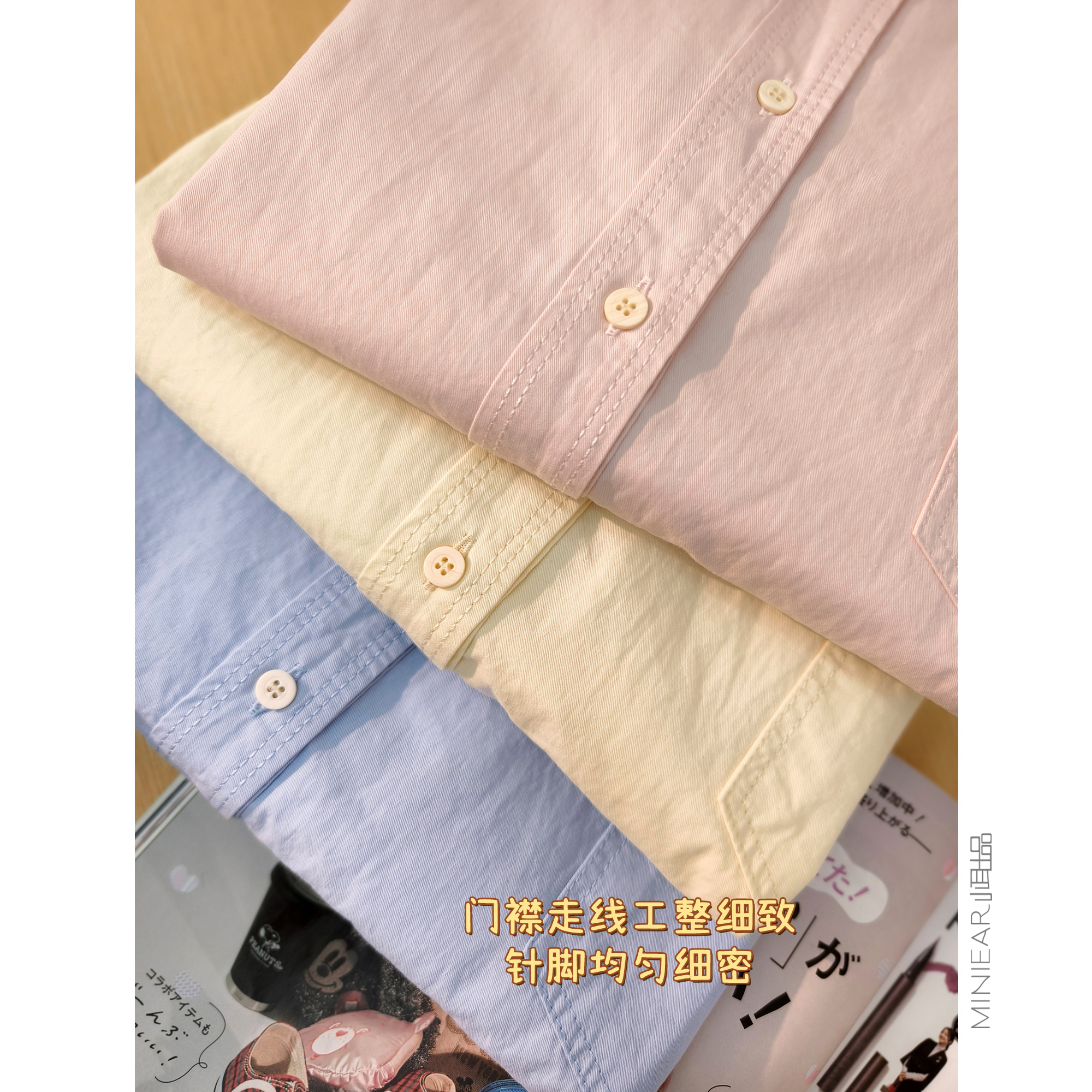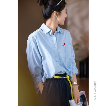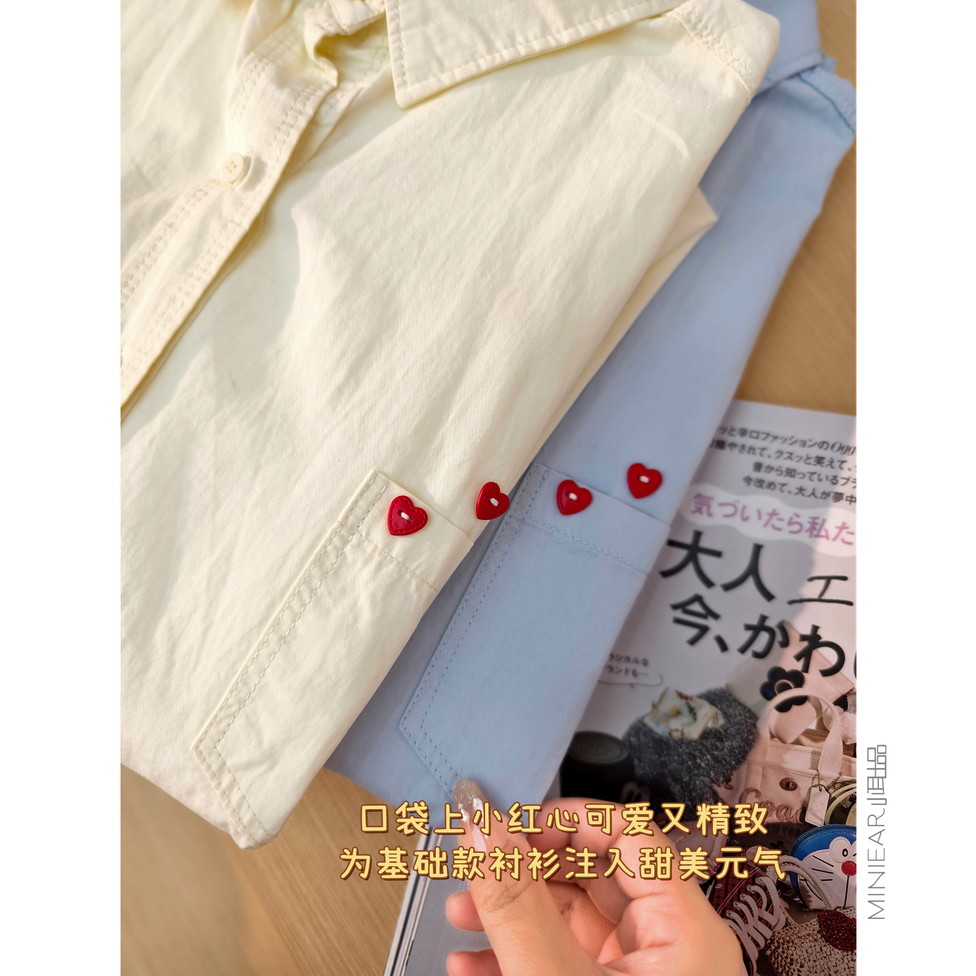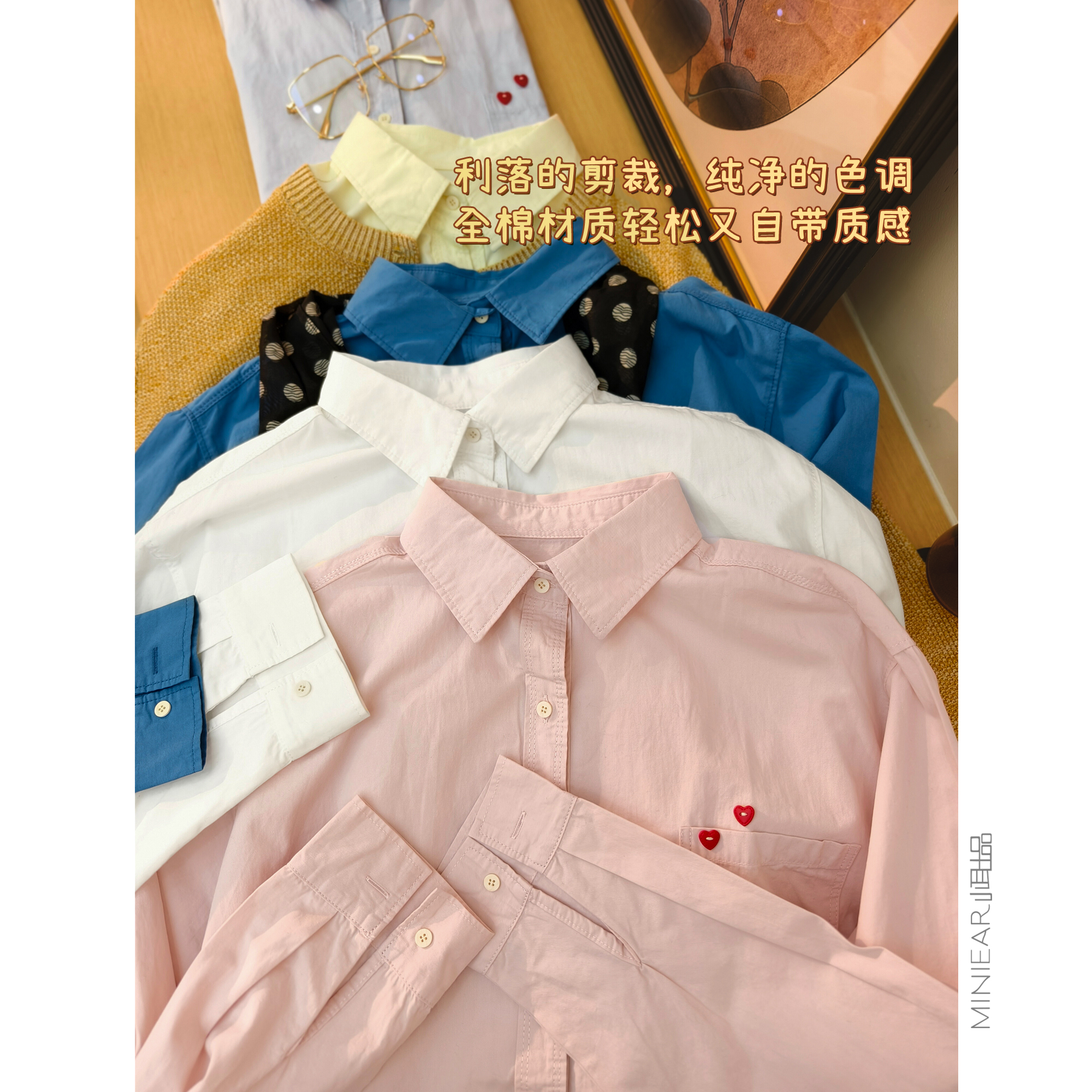 小耳出品 糖果色衬衫/精梳棉/双车线门襟 翻领爱心宽松长袖衬衫女