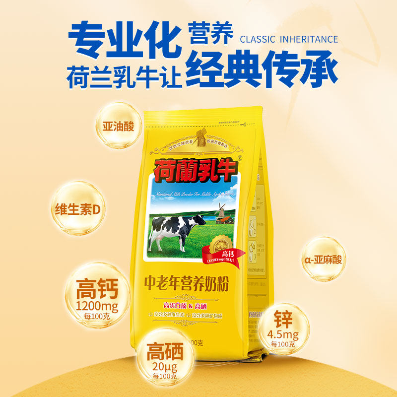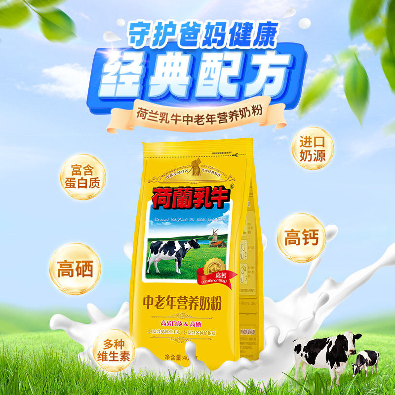正品荷兰乳牛中老年配方奶粉400g袋装高钙高硒老人无蔗糖牛奶粉