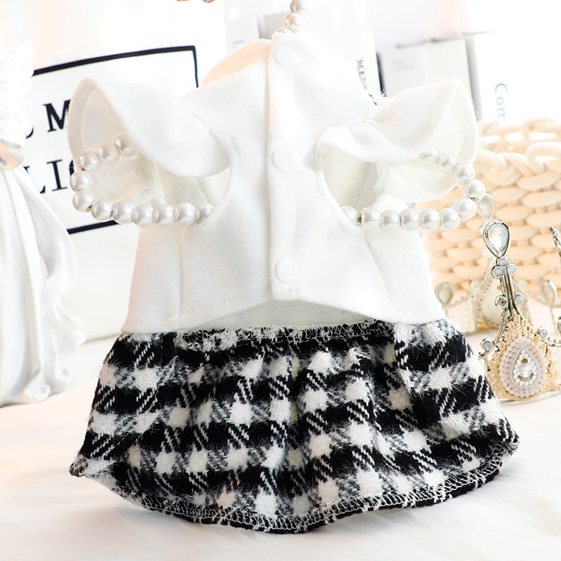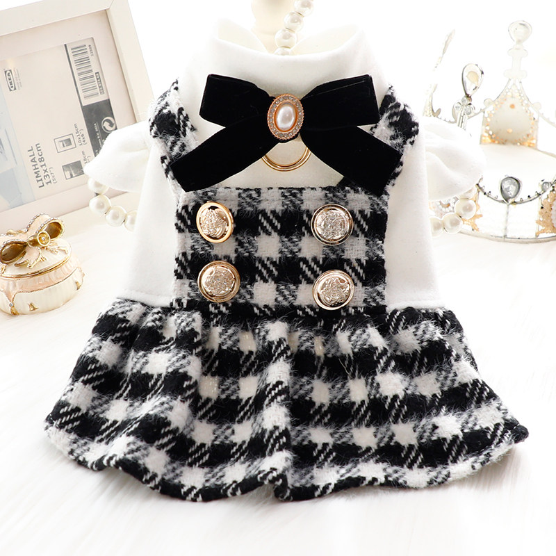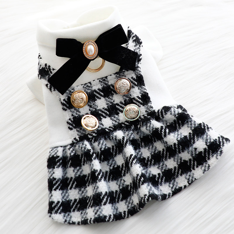 狗狗衣服秋冬装猫咪公主裙小香风黑白格可牵引小型犬泰迪宠物5283
