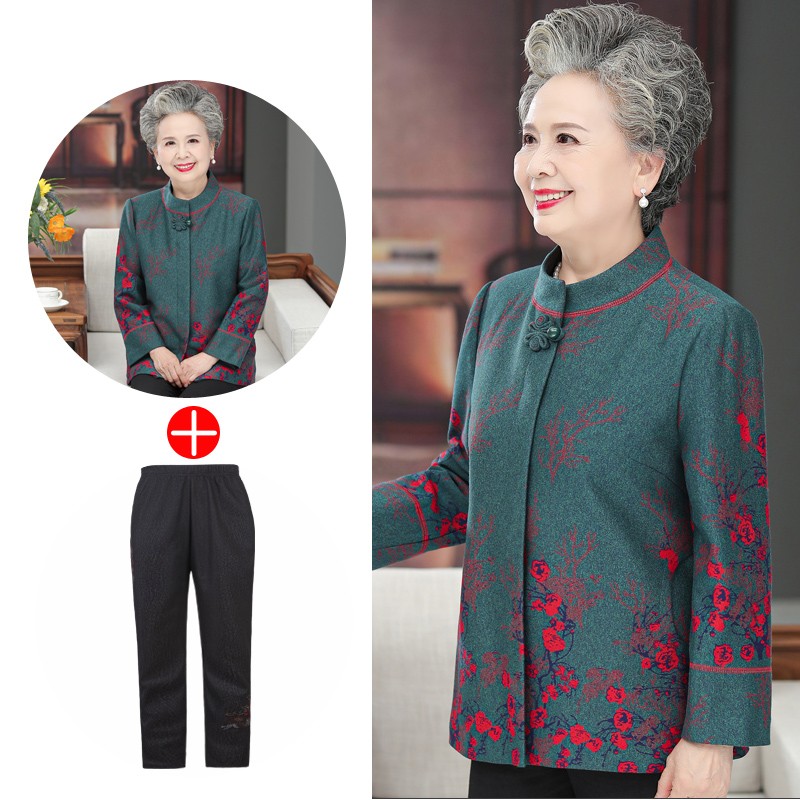 老年人春秋外套女70岁80奶奶唐装上衣洋气老太太妈妈秋装老人衣服