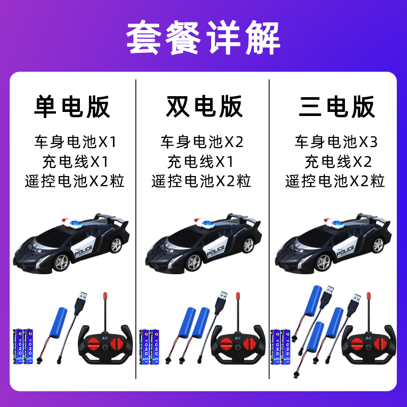遥控小汽车充电版无线赛车可漂移耐摔电动警车3岁4儿童男孩玩具车