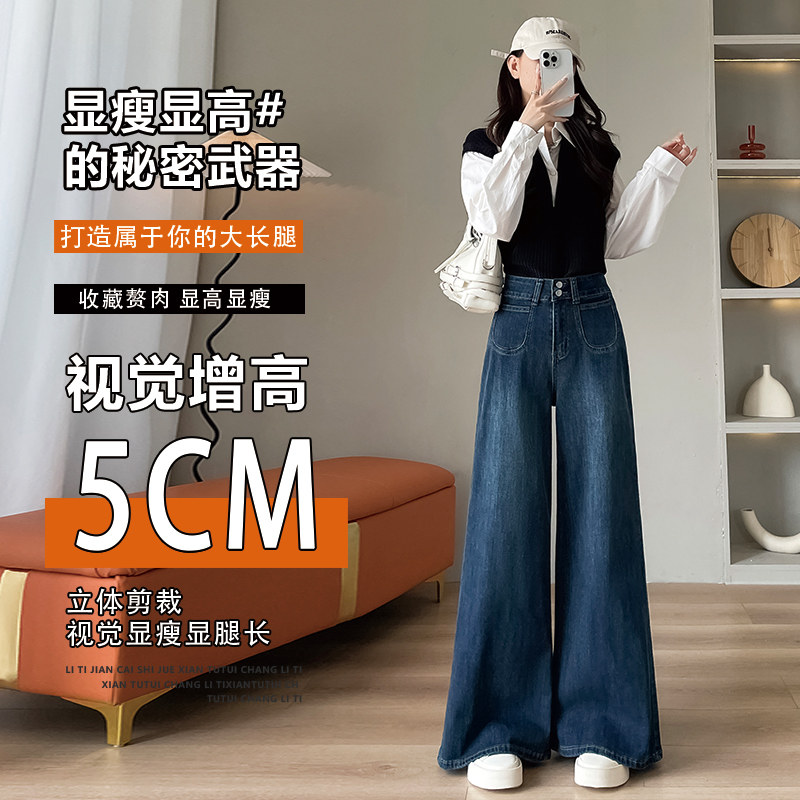 阔腿牛仔裤女春秋夏季薄款2025年新款设计感显瘦宽松喇叭直筒裤子